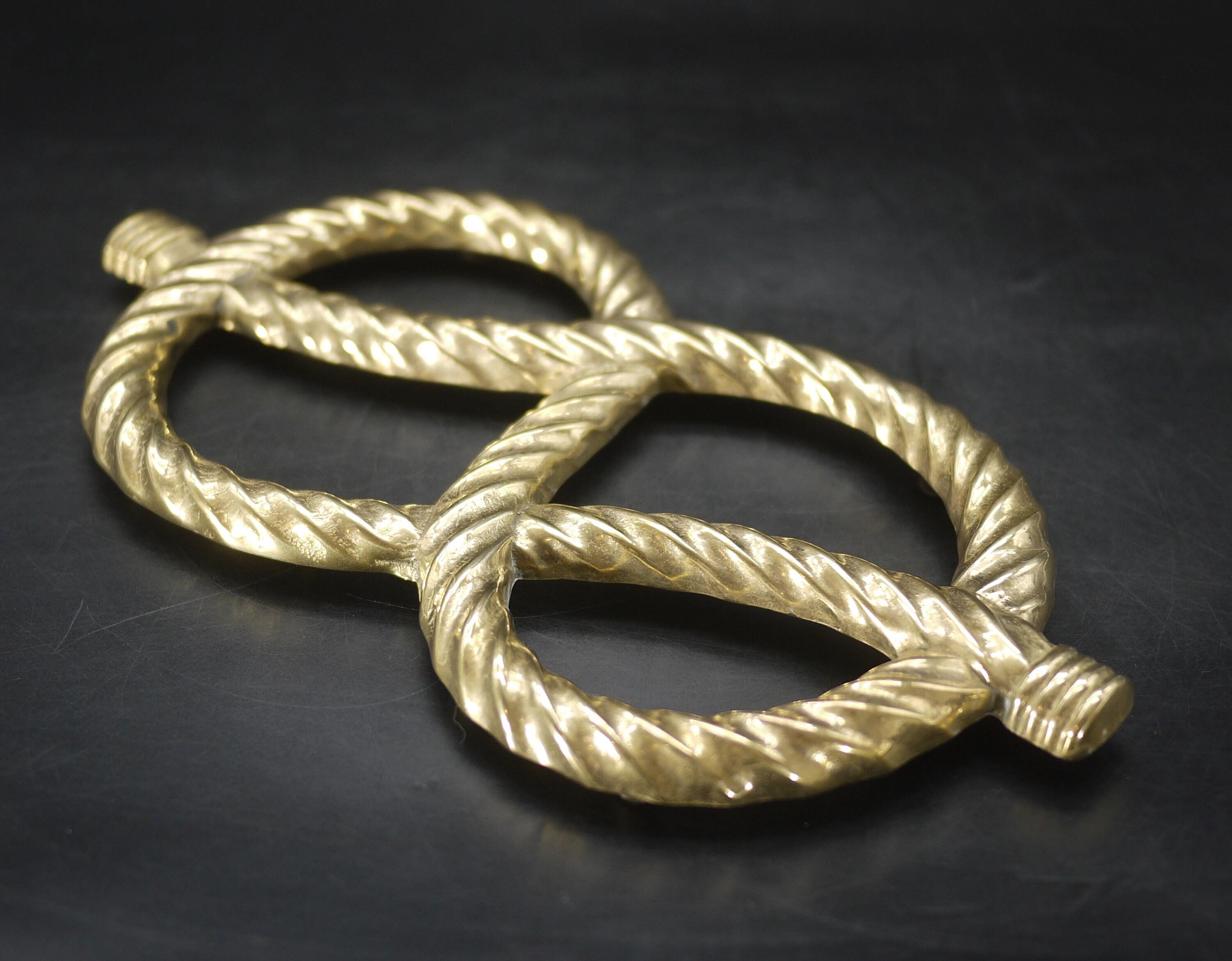 Vintage French brass trivet in the shape of a knot imitating rope from the 1960s.