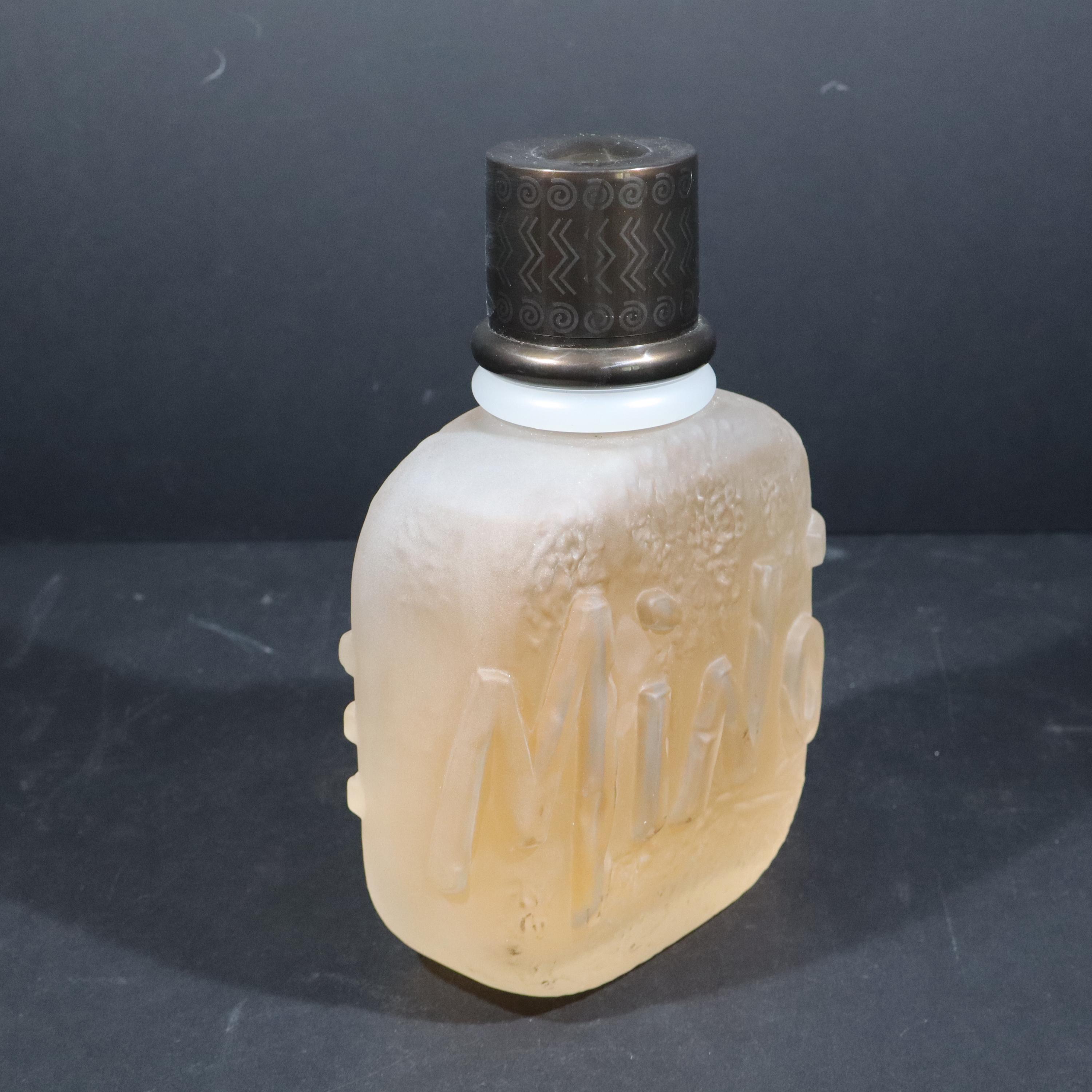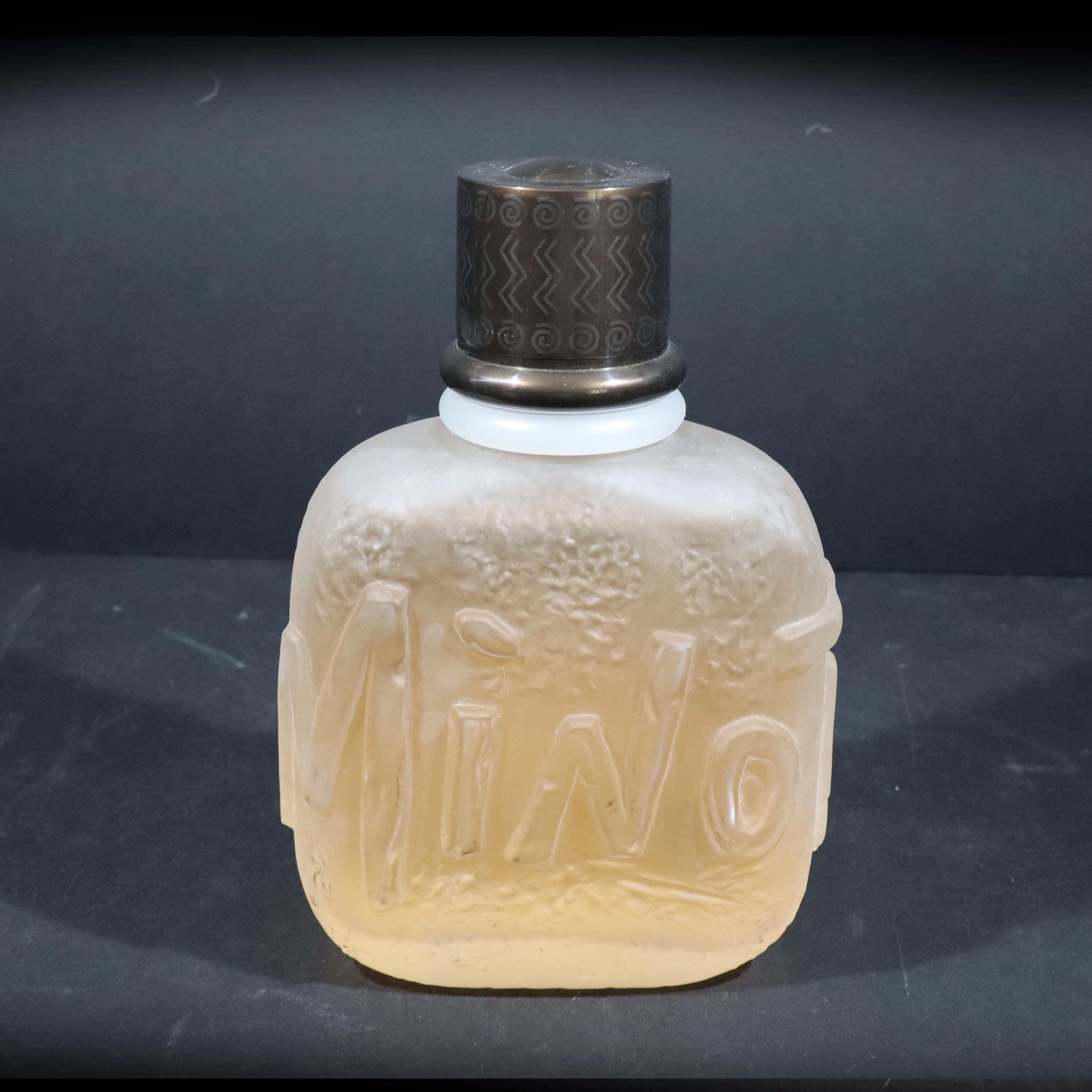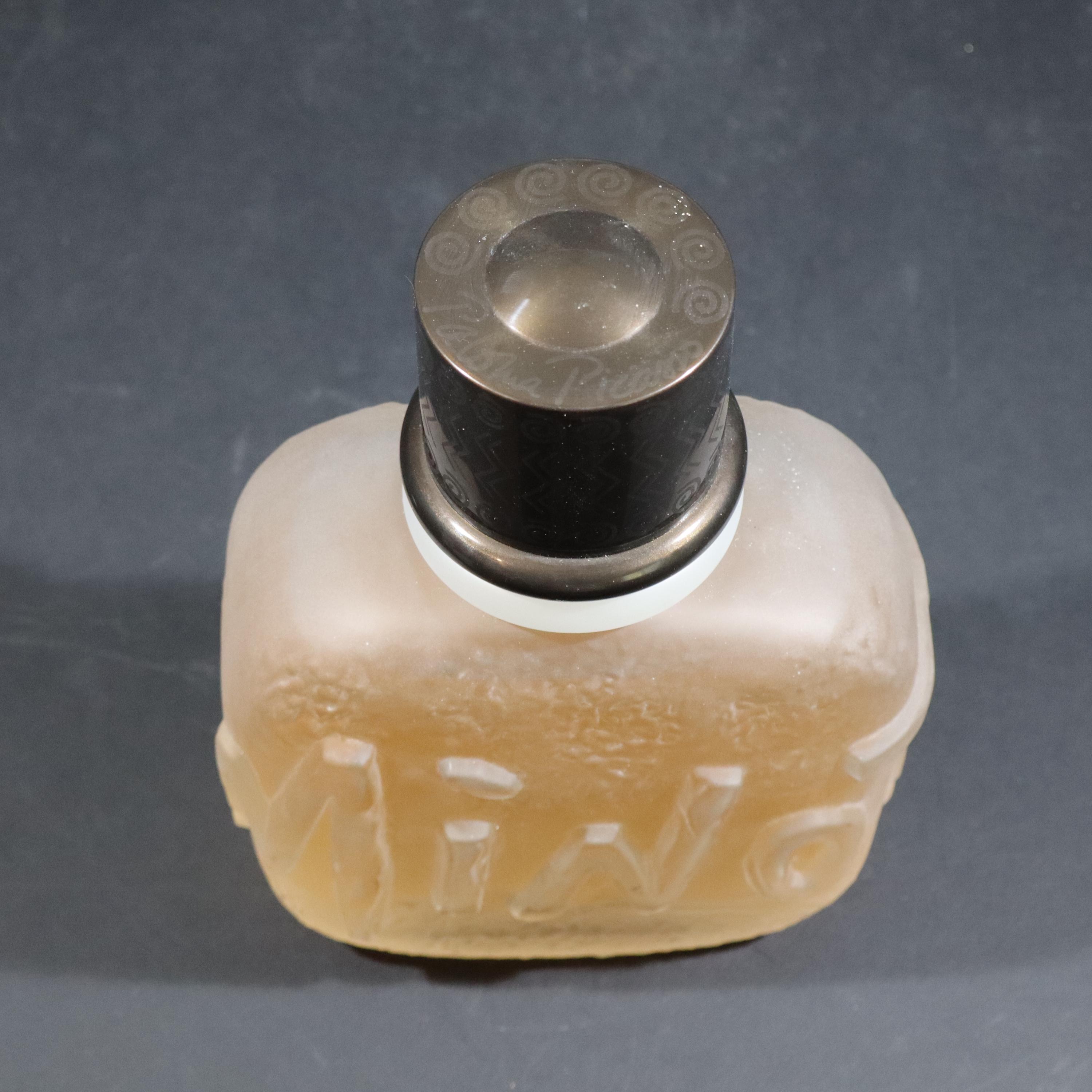 Incredible giant fake MINOTAURE perfume bottle by Paloma Picasso from the 1990s. Large glass bottle imagined by the designer, evokes a pebble polished by the sea, slightly sculpted in bas-relief like an antique object with its solid plastic stopper. Minotaur, echoing Greek mythology and the power of the Gods, the perfume was created by perfumer Michel Almairac for Pablo Picasso's daughter.