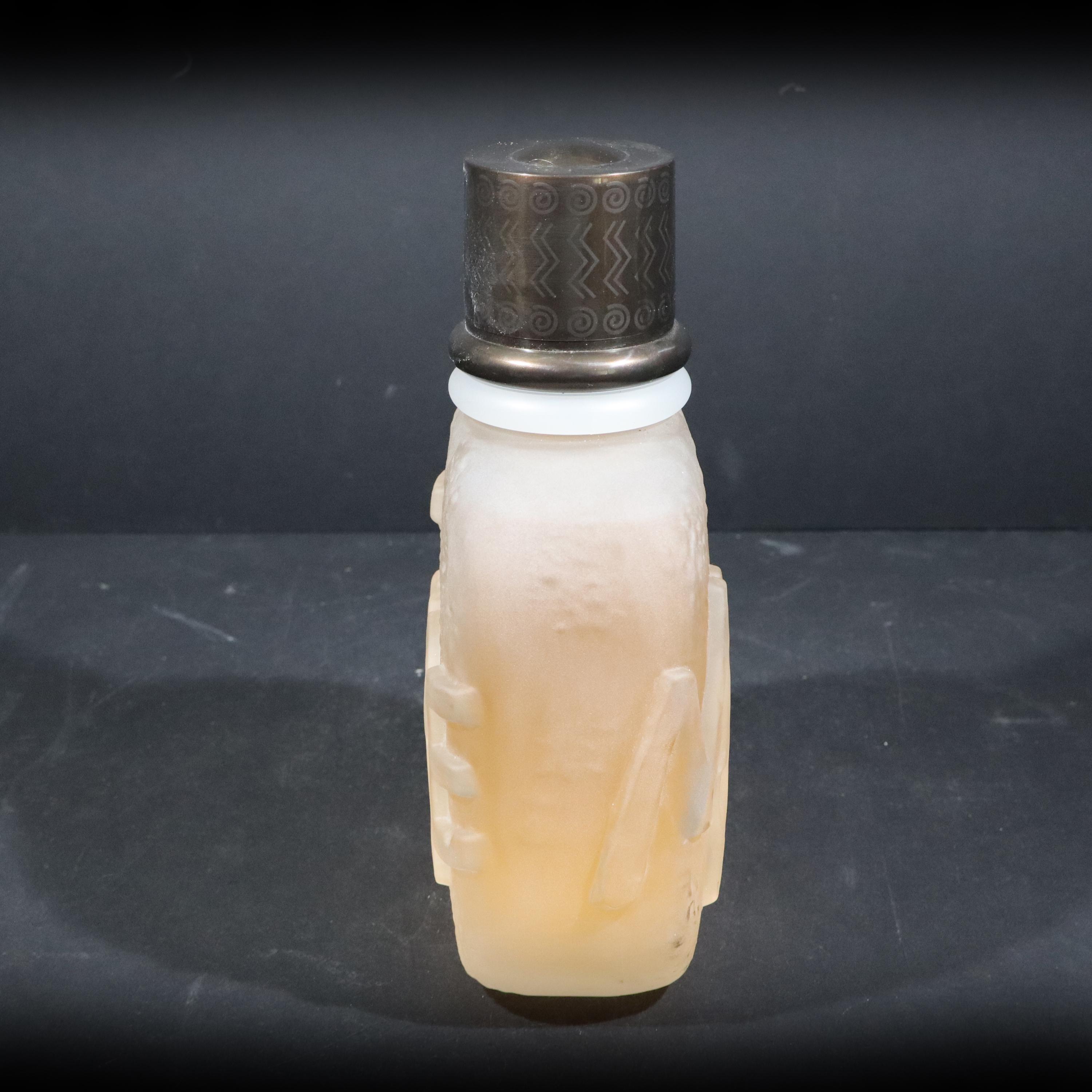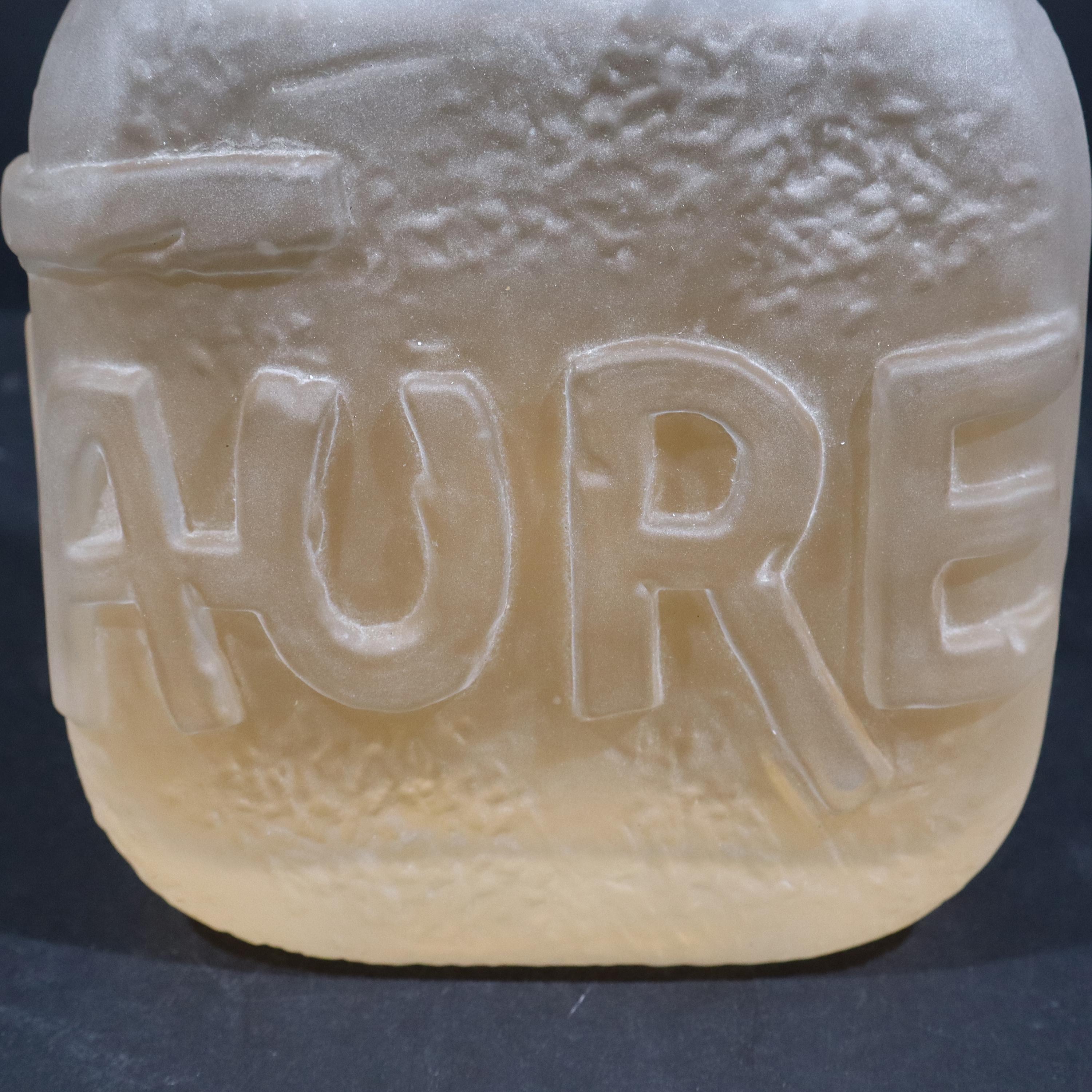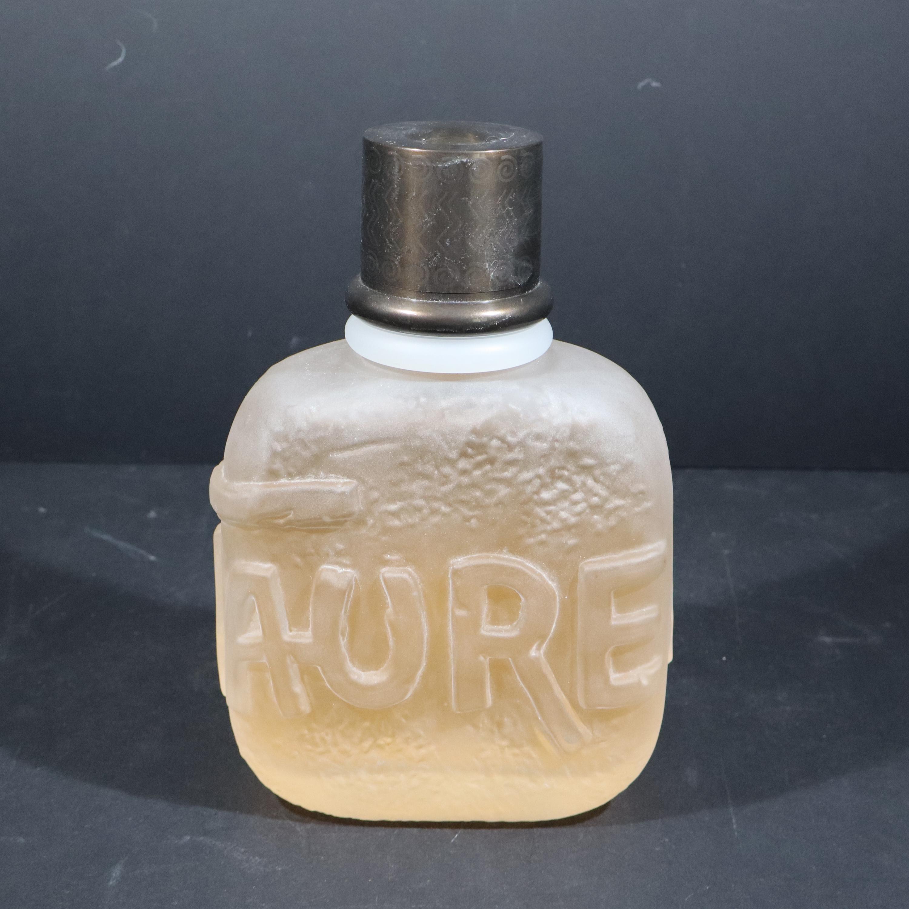 Incredible giant fake MINOTAURE perfume bottle by Paloma Picasso from the 1990s. Large glass bottle imagined by the designer, evokes a pebble polished by the sea, slightly sculpted in bas-relief like an antique object with its solid plastic stopper. Minotaur, echoing Greek mythology and the power of the Gods, the perfume was created by perfumer Michel Almairac for Pablo Picasso's daughter.