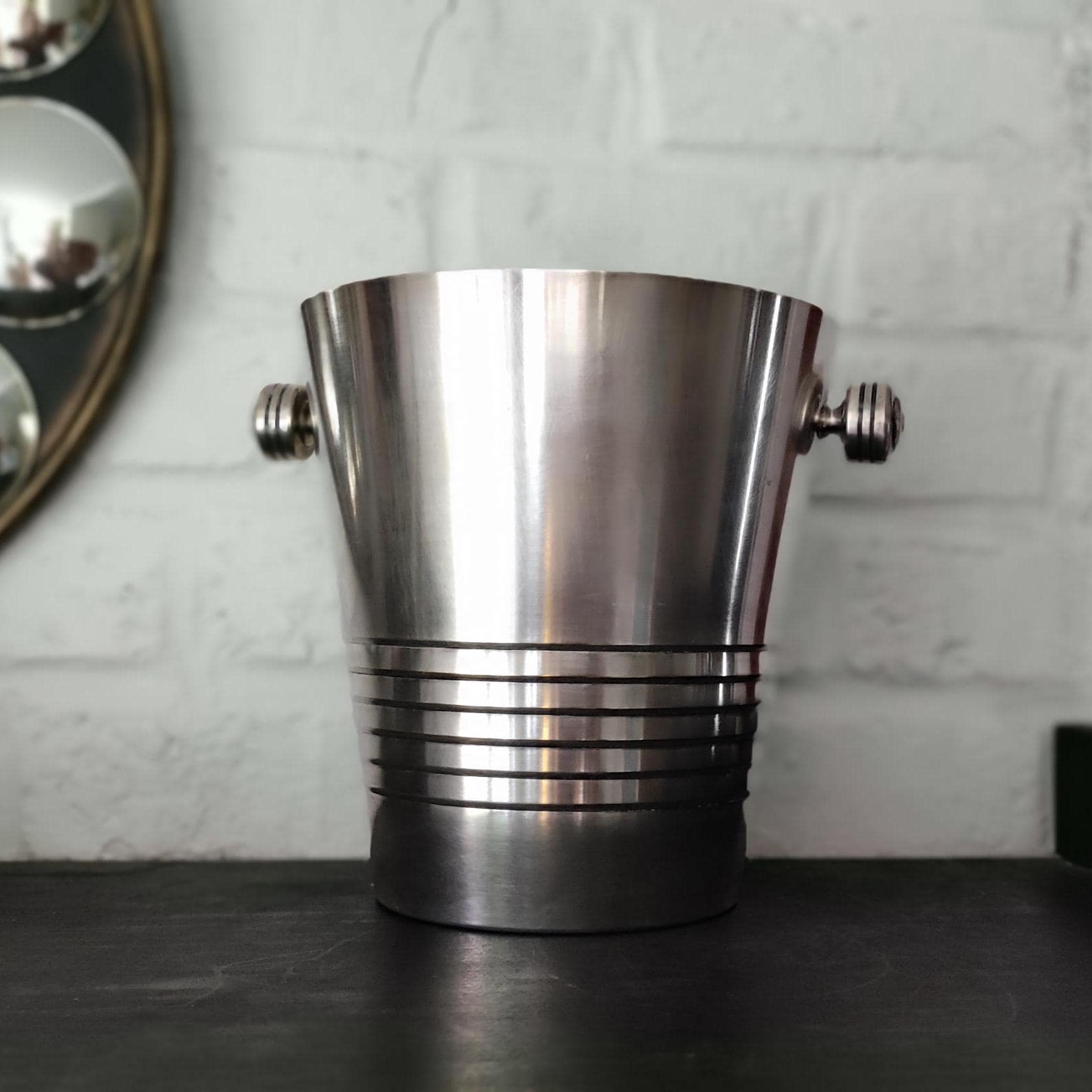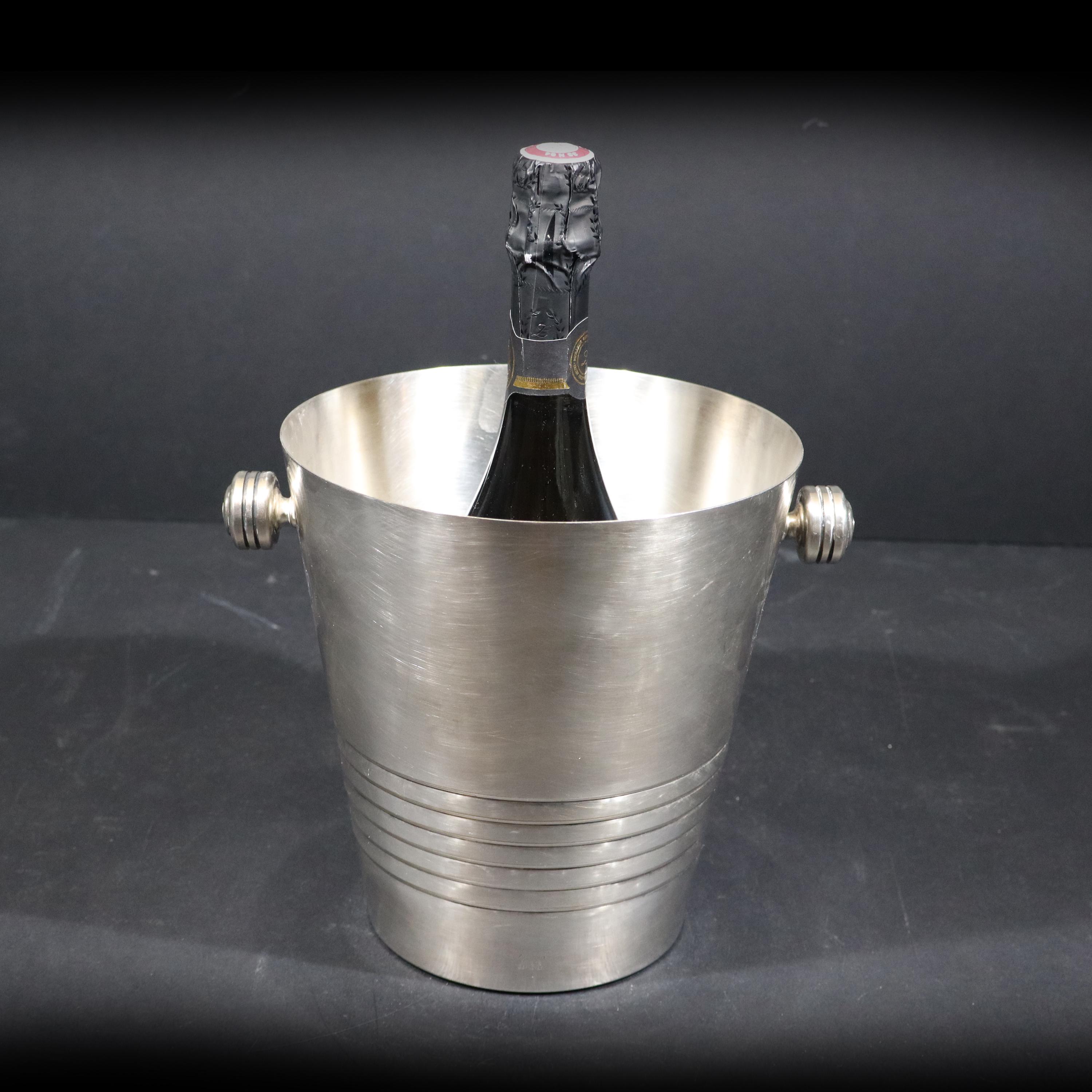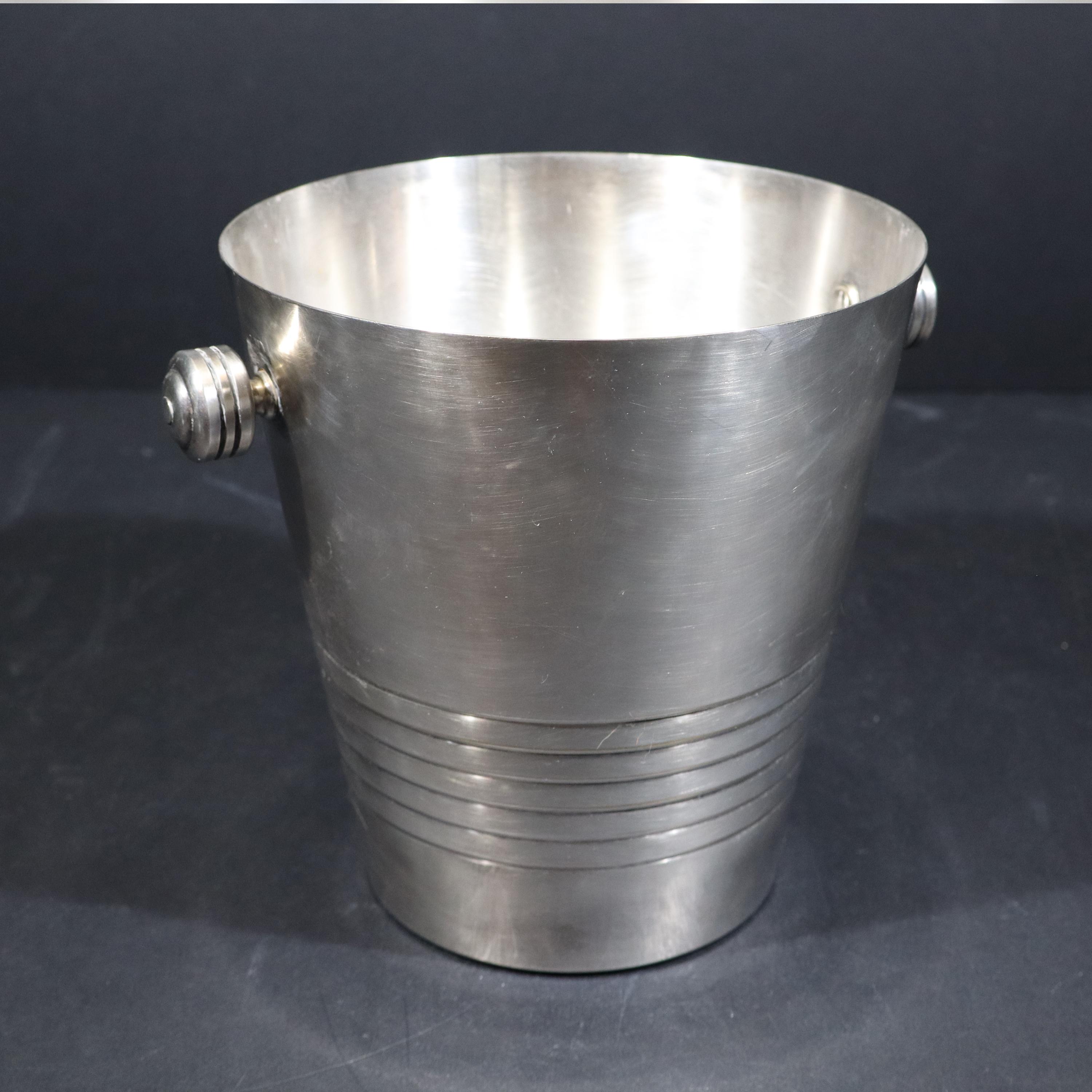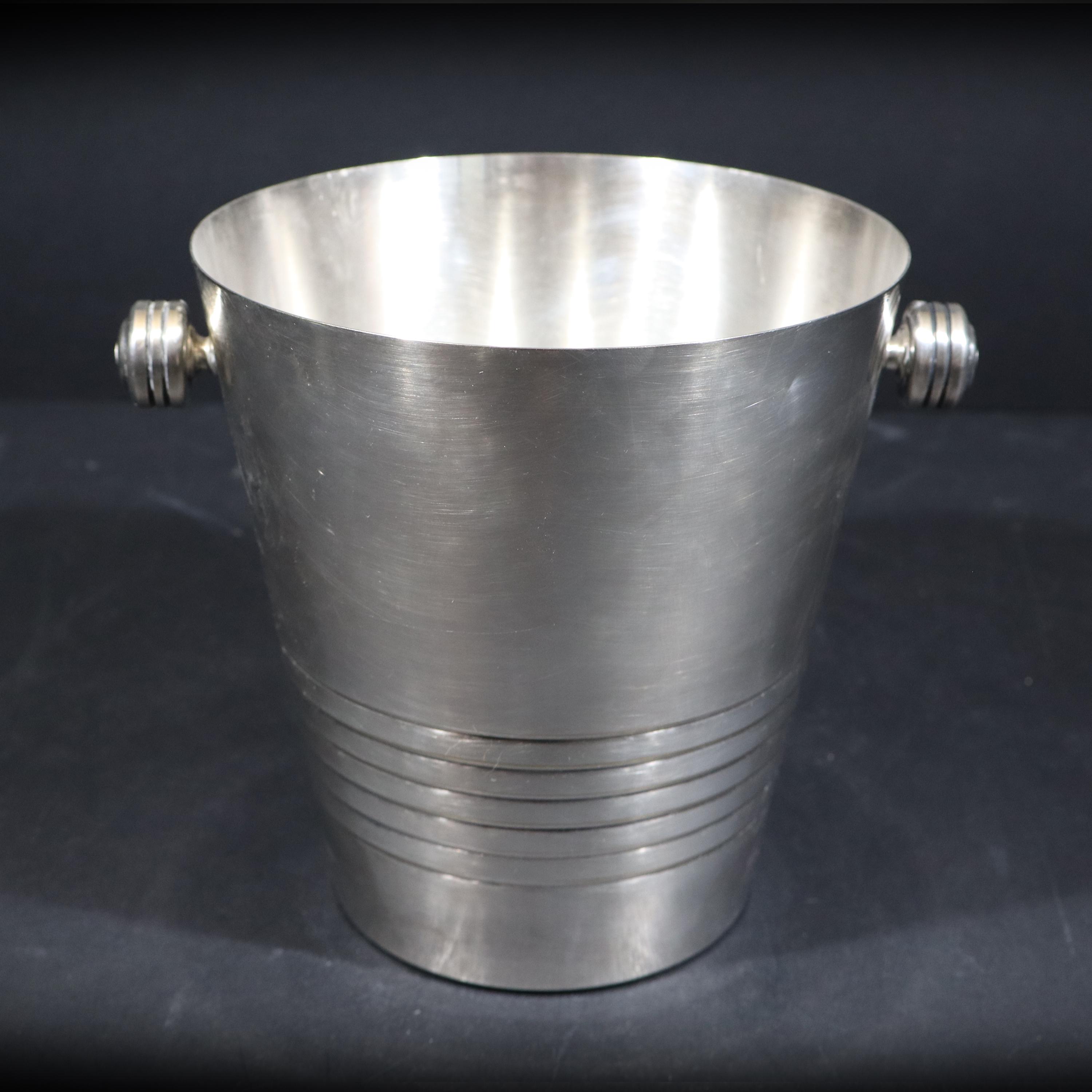 The antique Art Deco silver metal cooler is in good condition with some signs of age and scratches, the interior shows it has been to many parties!