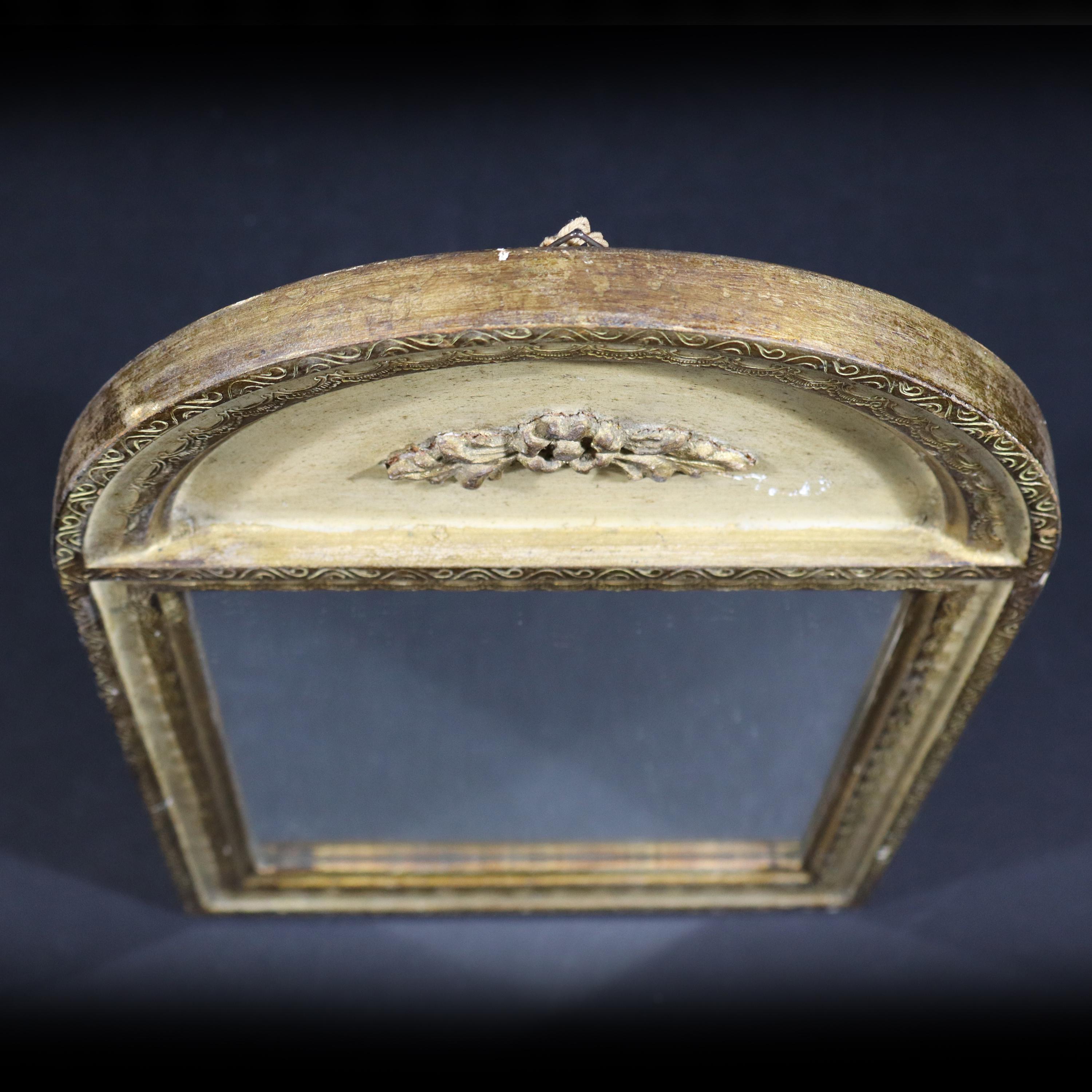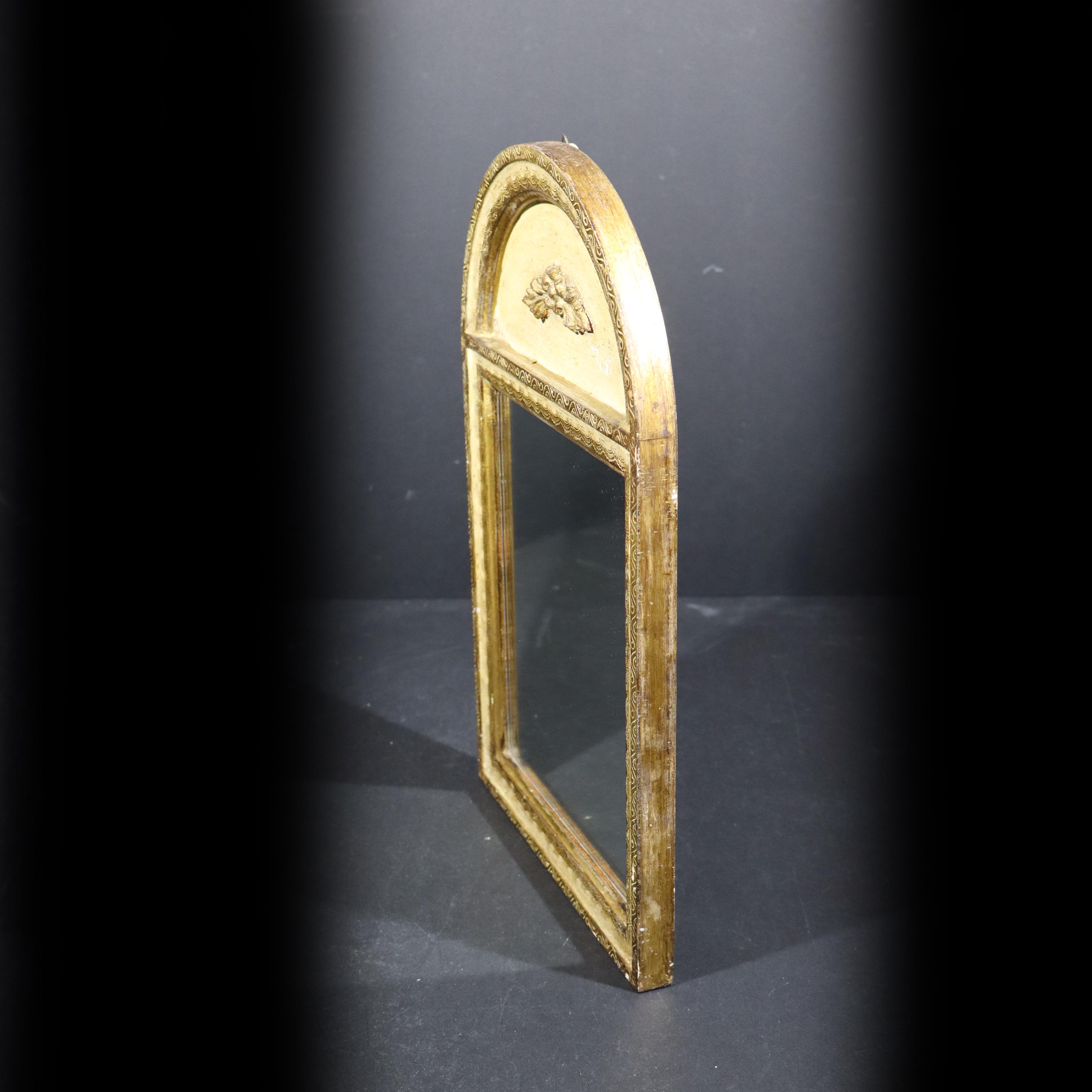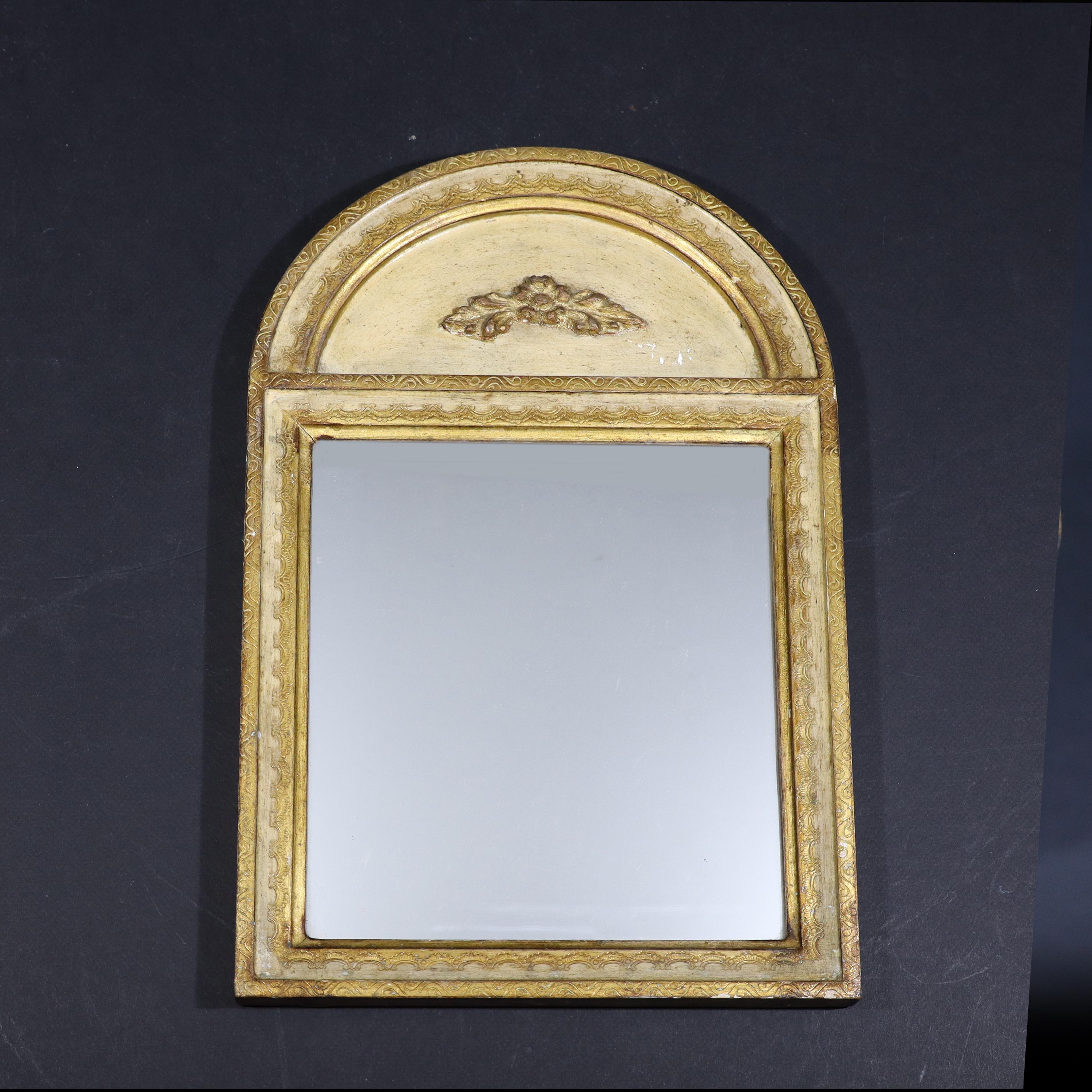 Vintage arched wall mirror with cream and gold gilt wood frame.