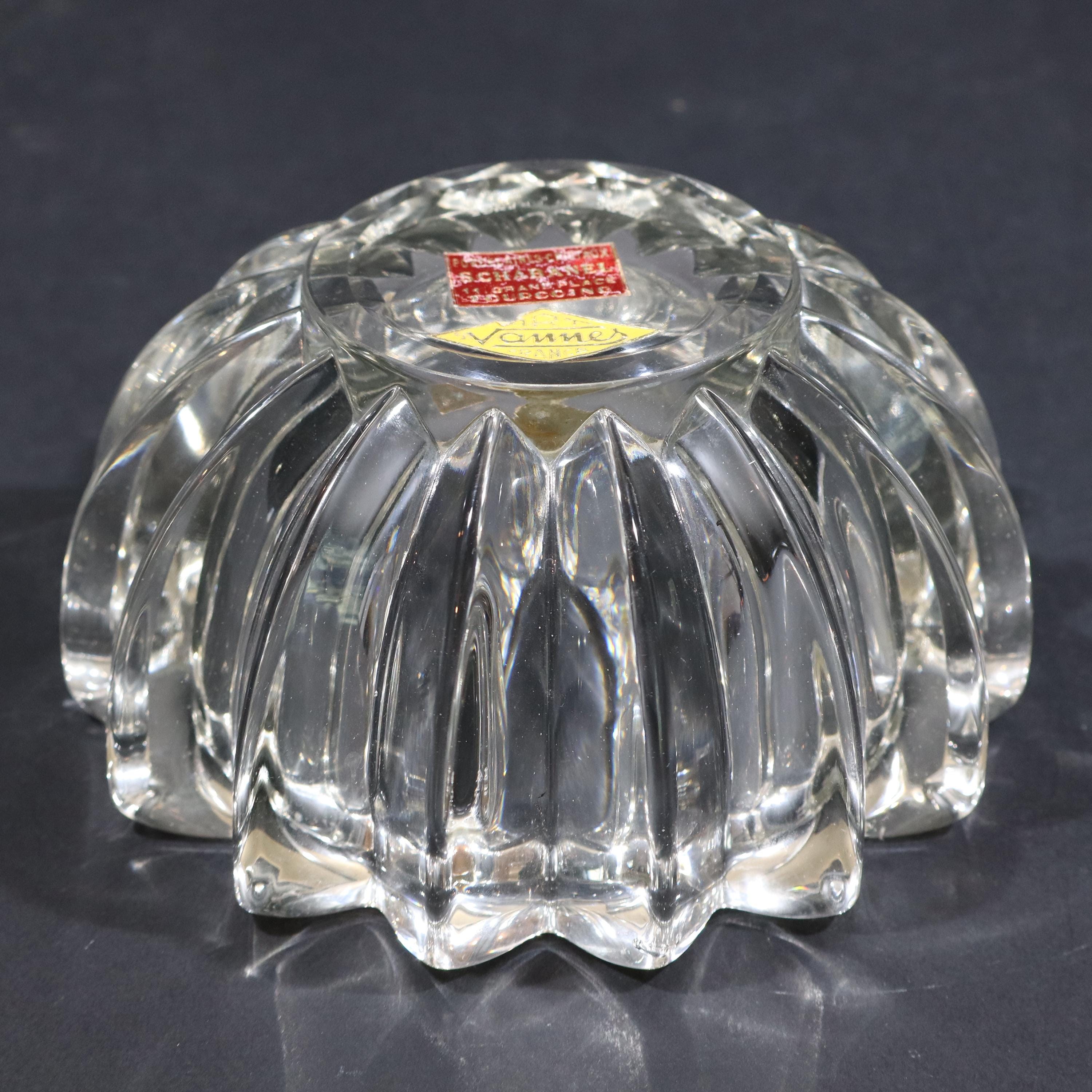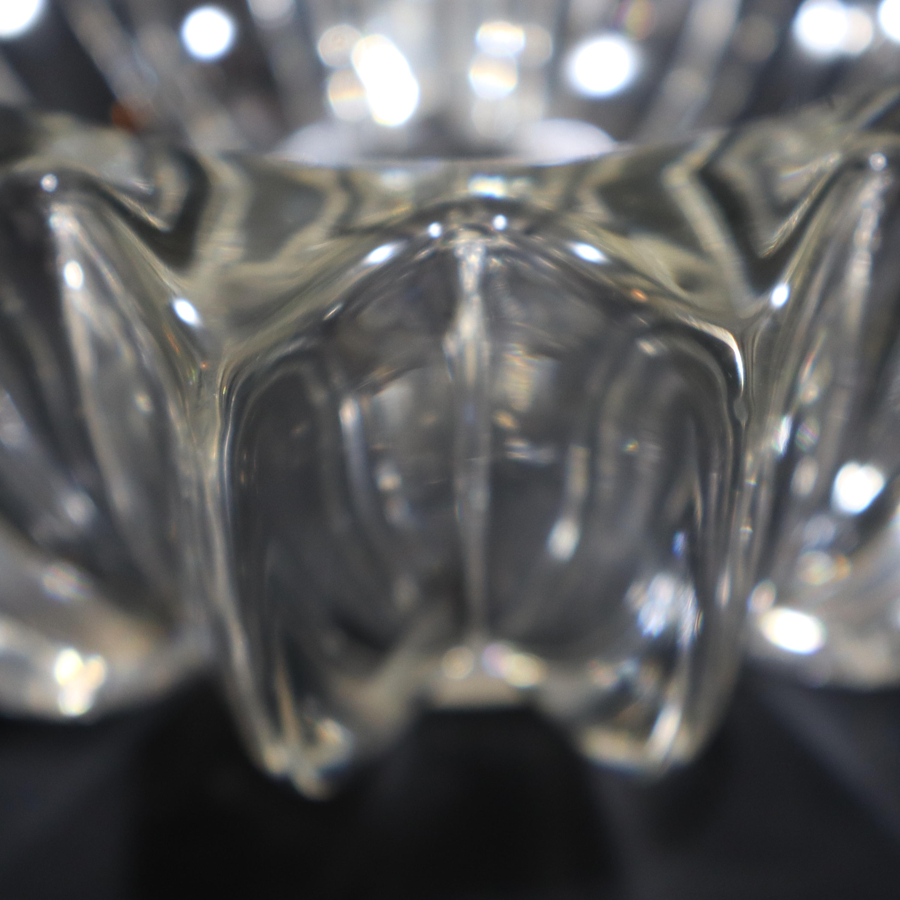 Le vase boule est en bon état et porte la signature sur sculpteur et l'étiquette de la cristallerie, c'est l'élément perforé qui présente des éclats sur le contour qui seront invisibles avec un arrangement floral. ATTENTION c'est lourd!