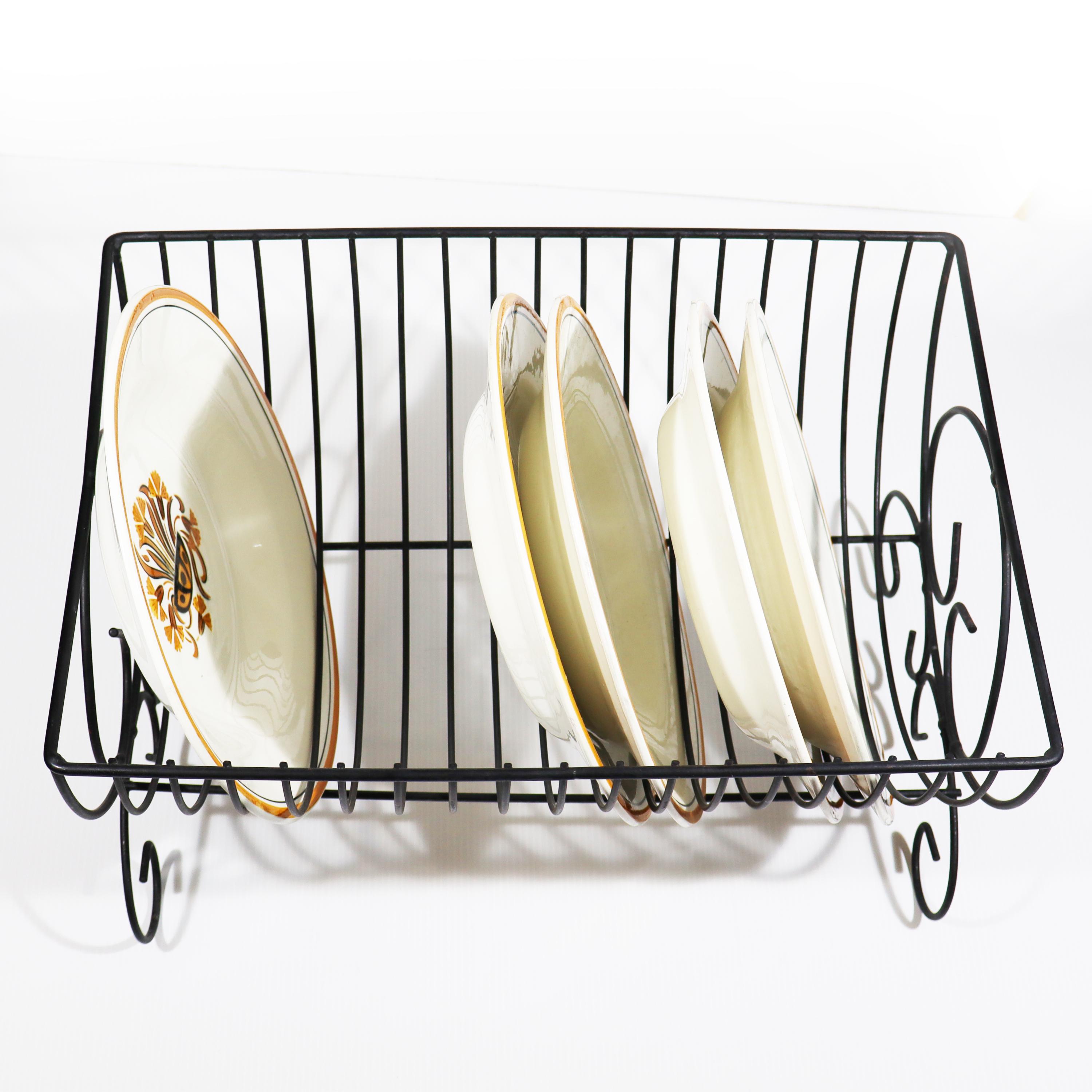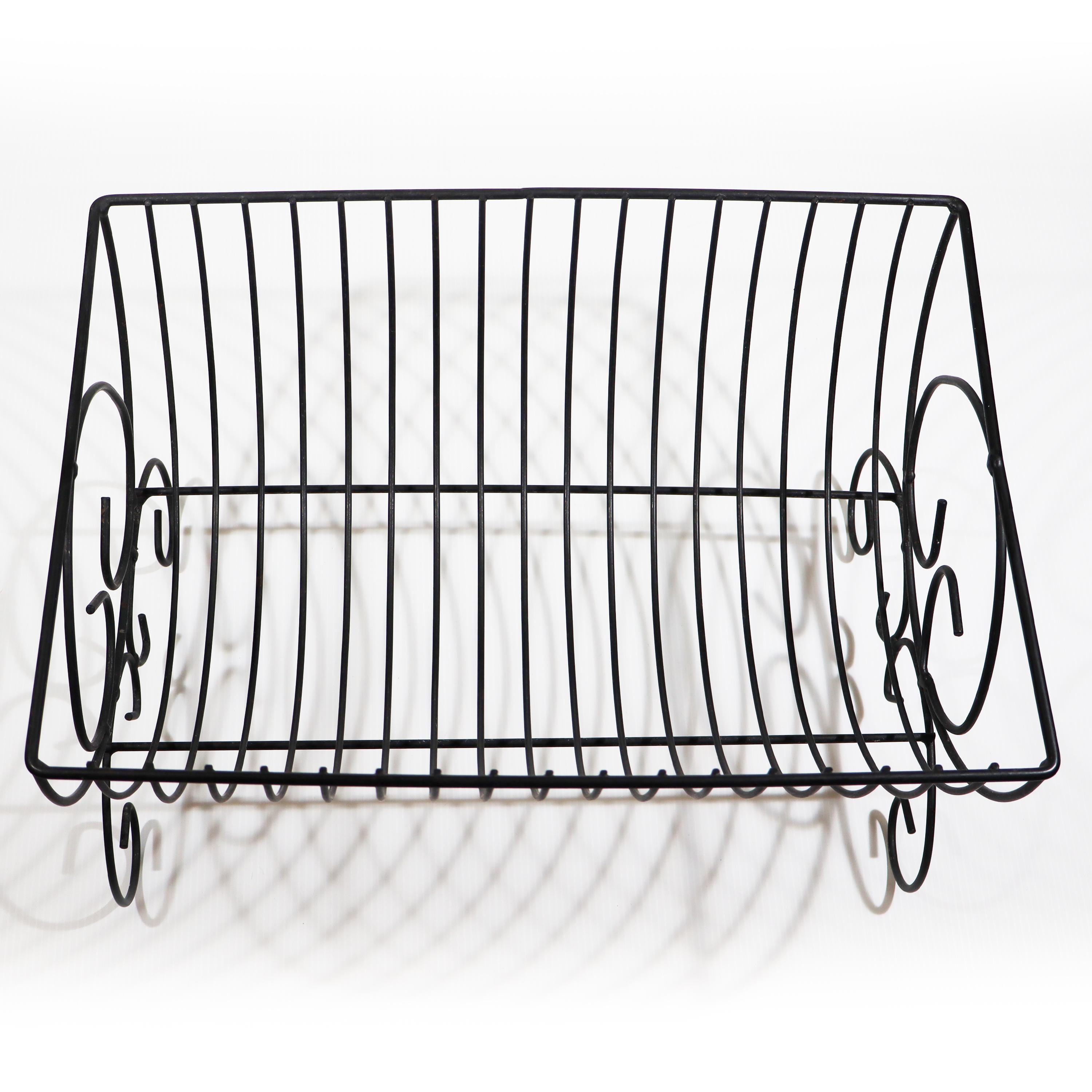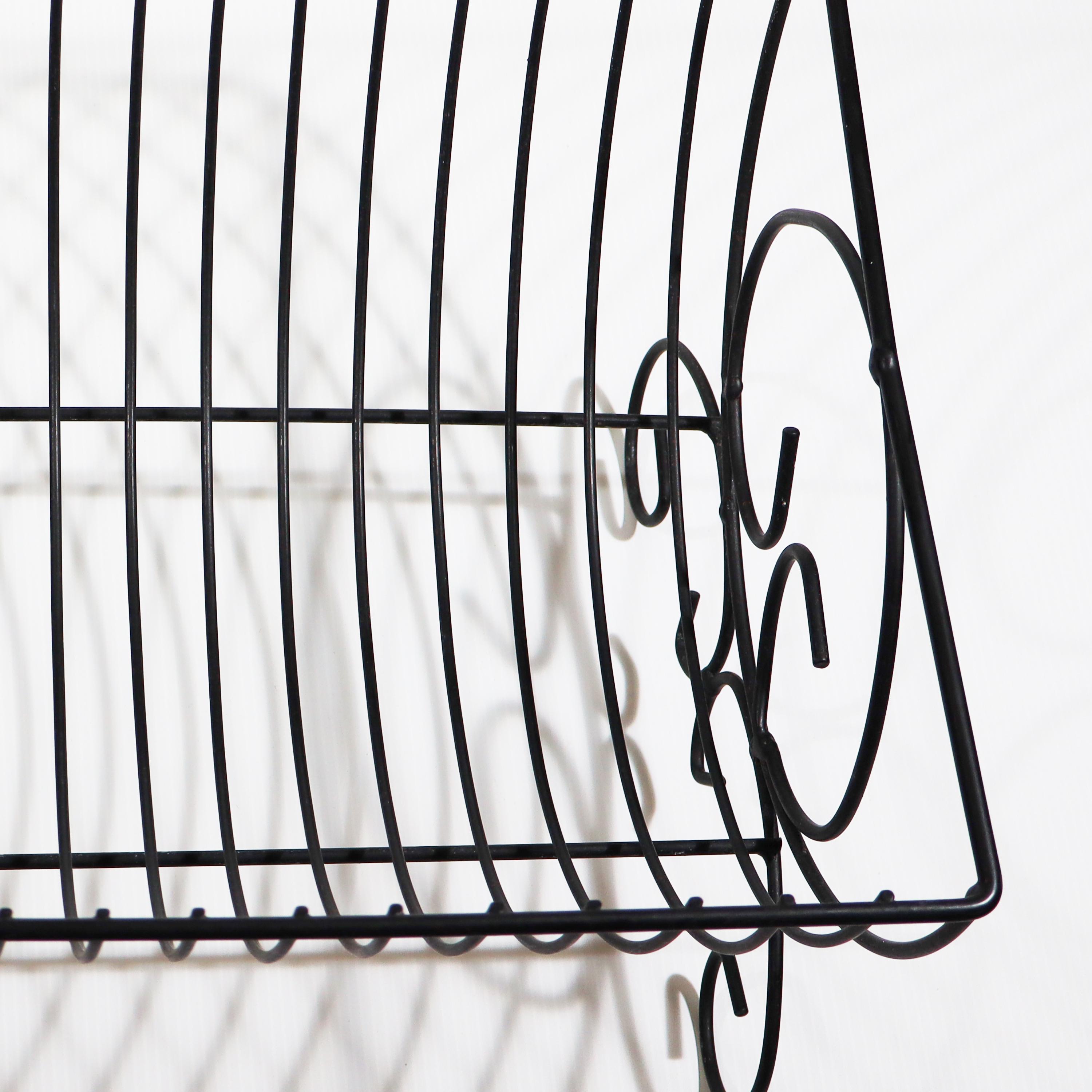 Vintage French wire dish drainer for a rustic farmhouse kitchen. This decorative dish drainer is made of black painted steel wire.