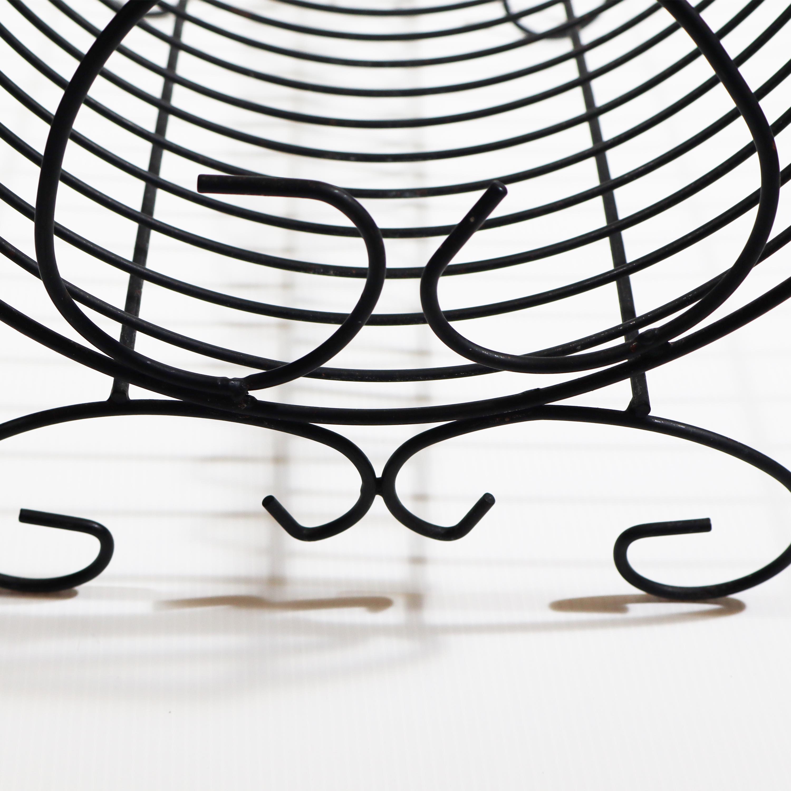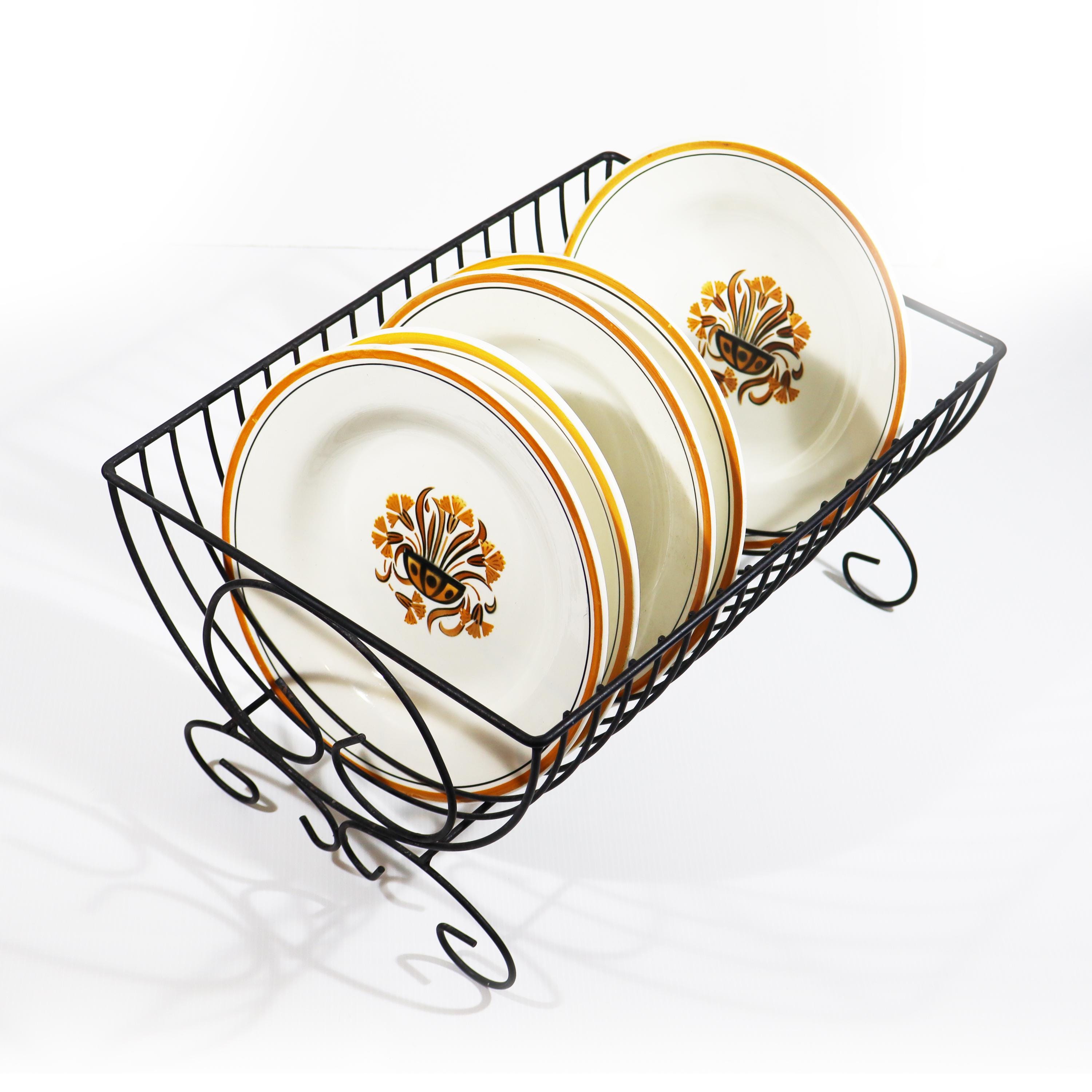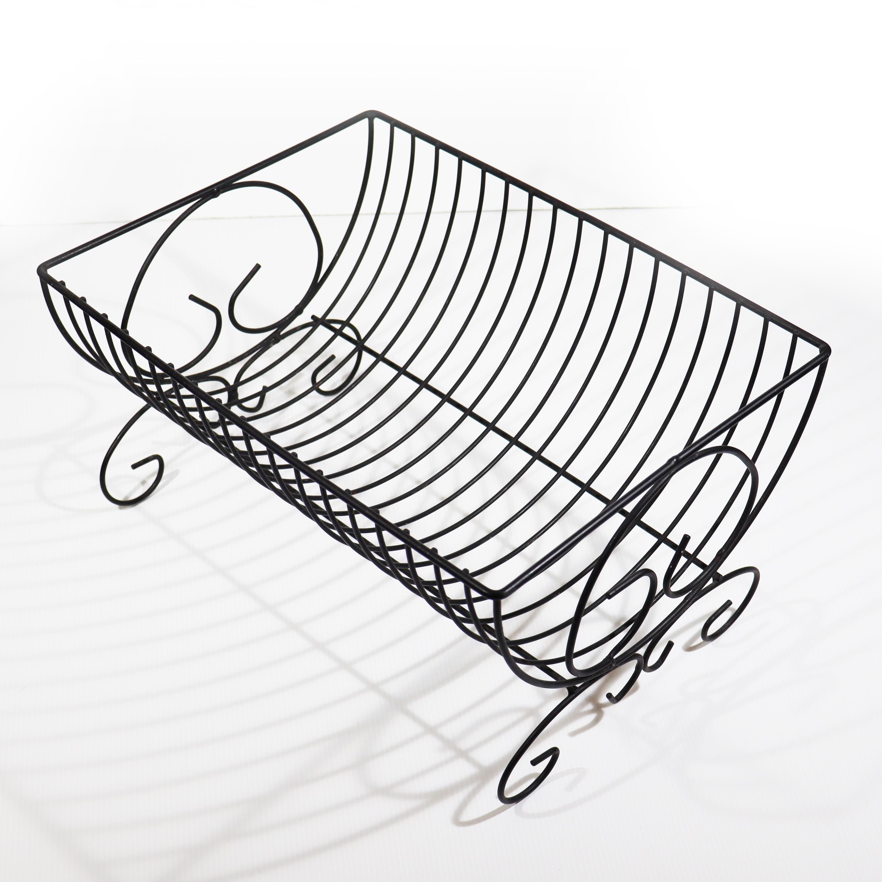 Vintage French wire dish drainer for a rustic farmhouse kitchen. This decorative dish drainer is made of black painted steel wire.