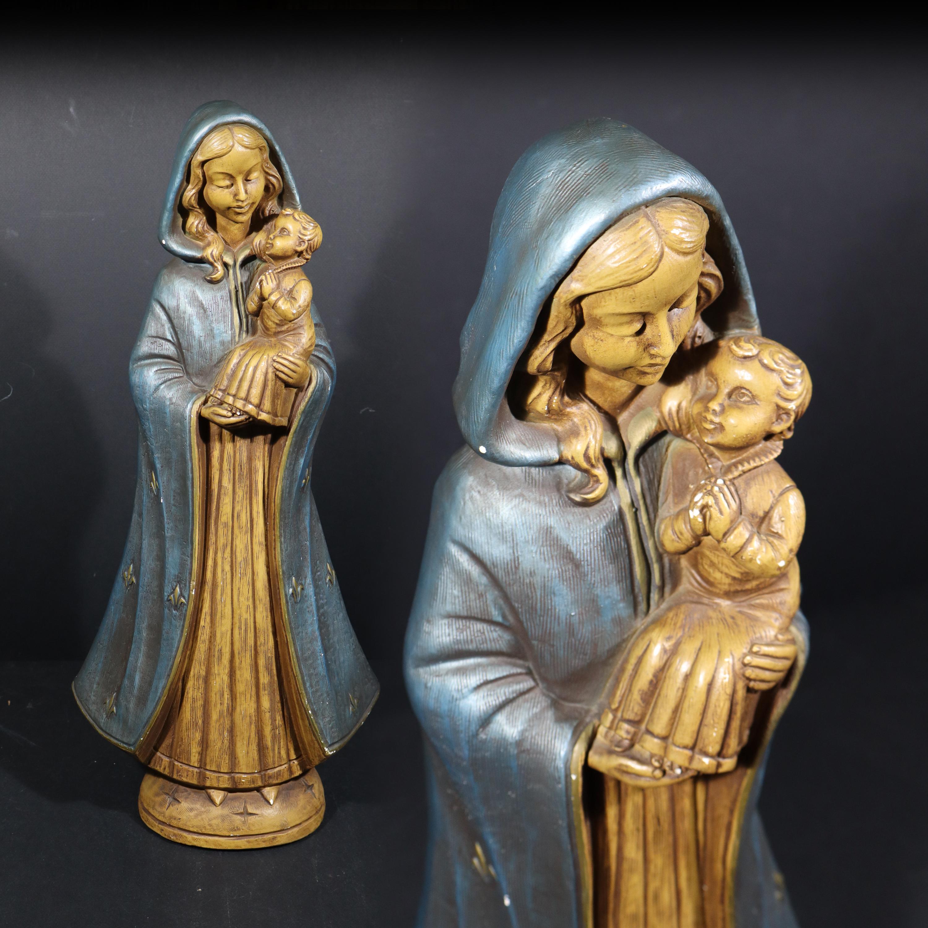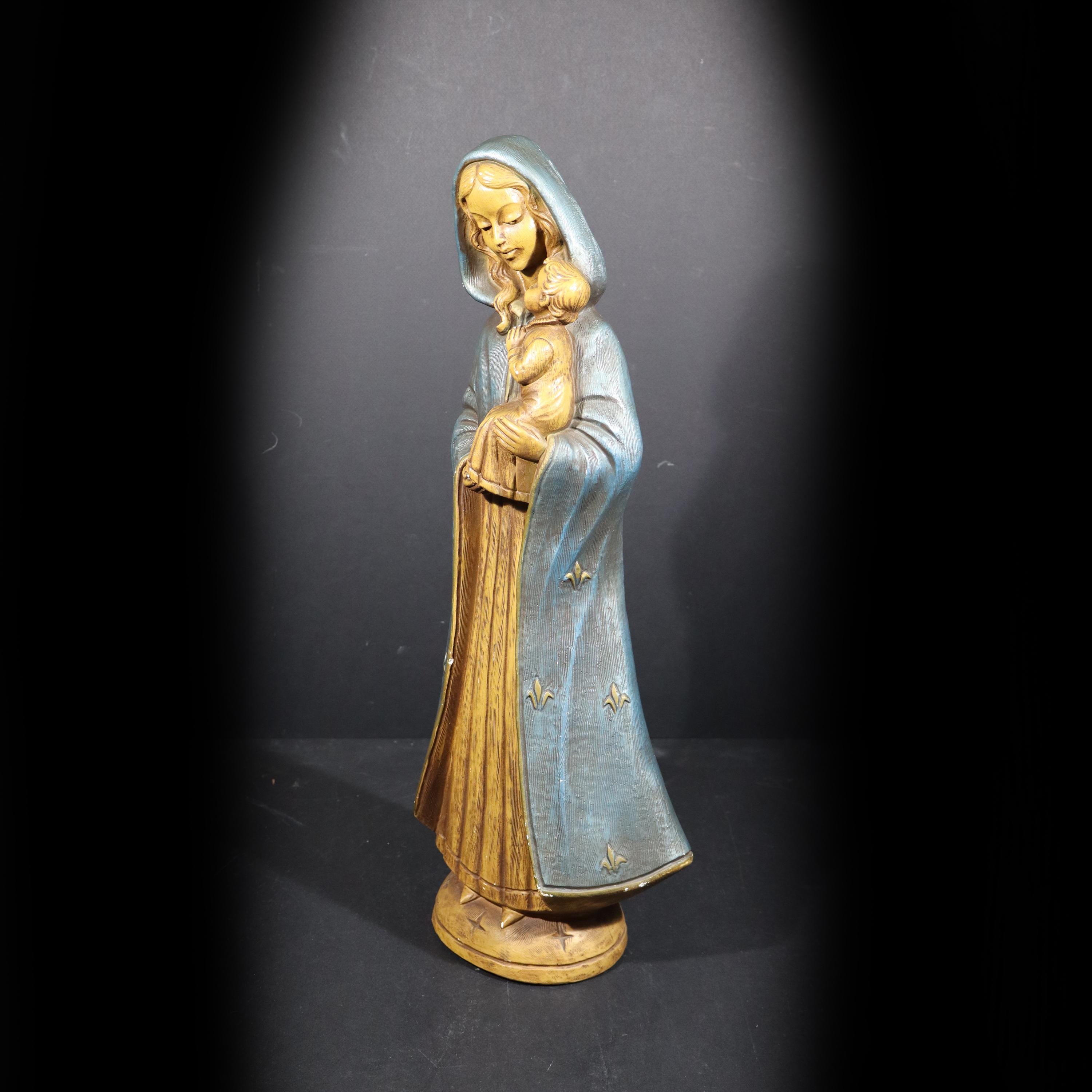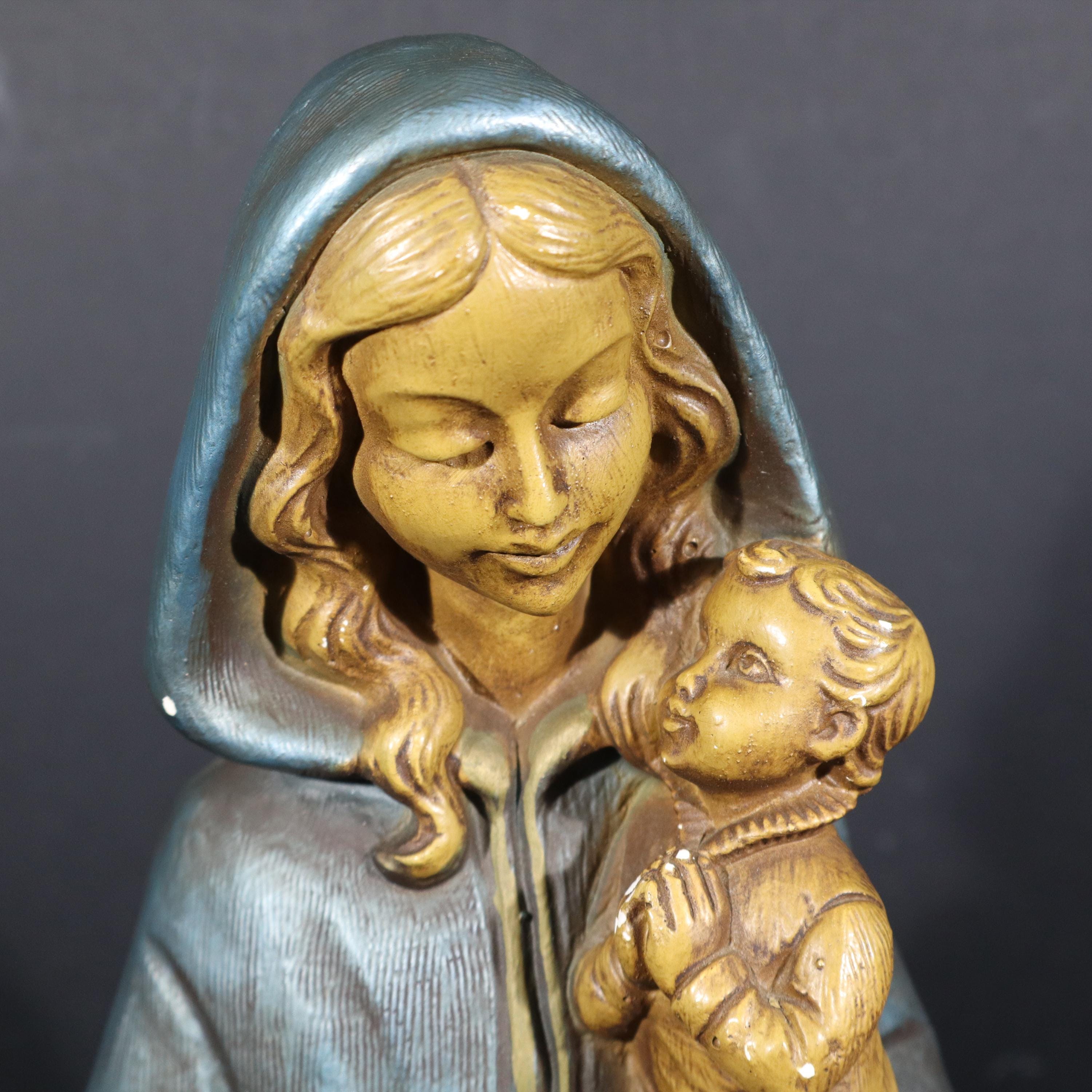 Antique Italian polychrome statue of mother and child, large religious plaster statue 51 cm.