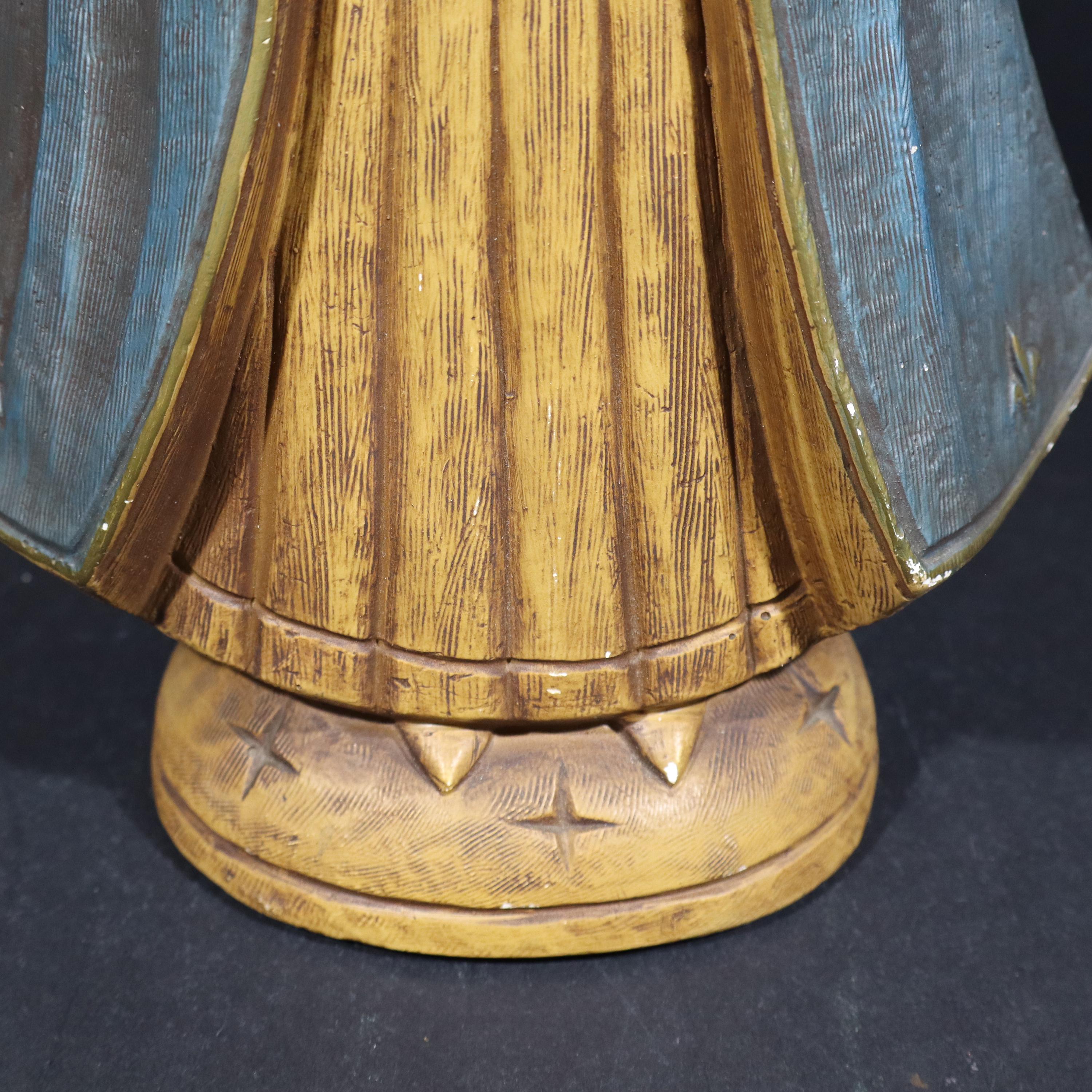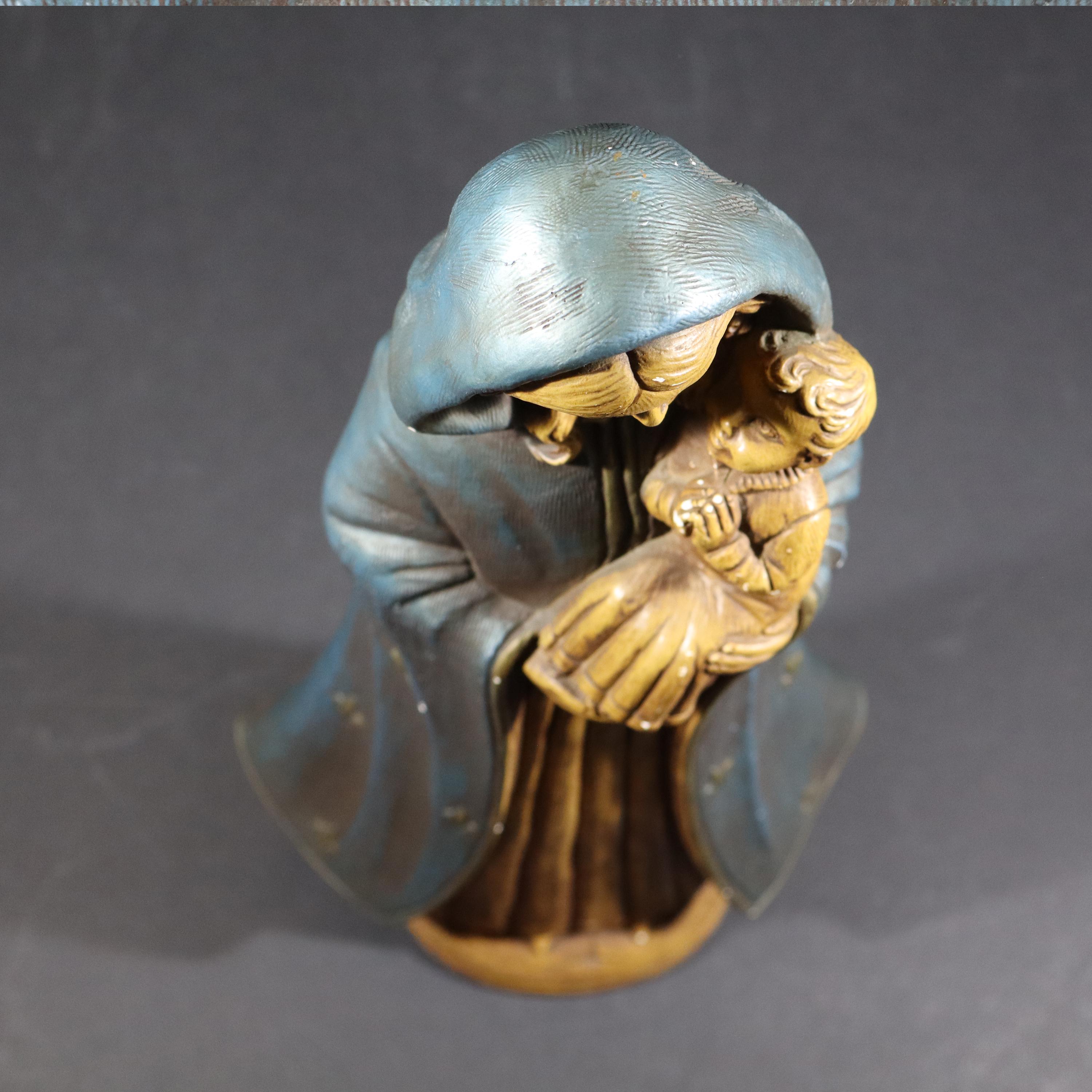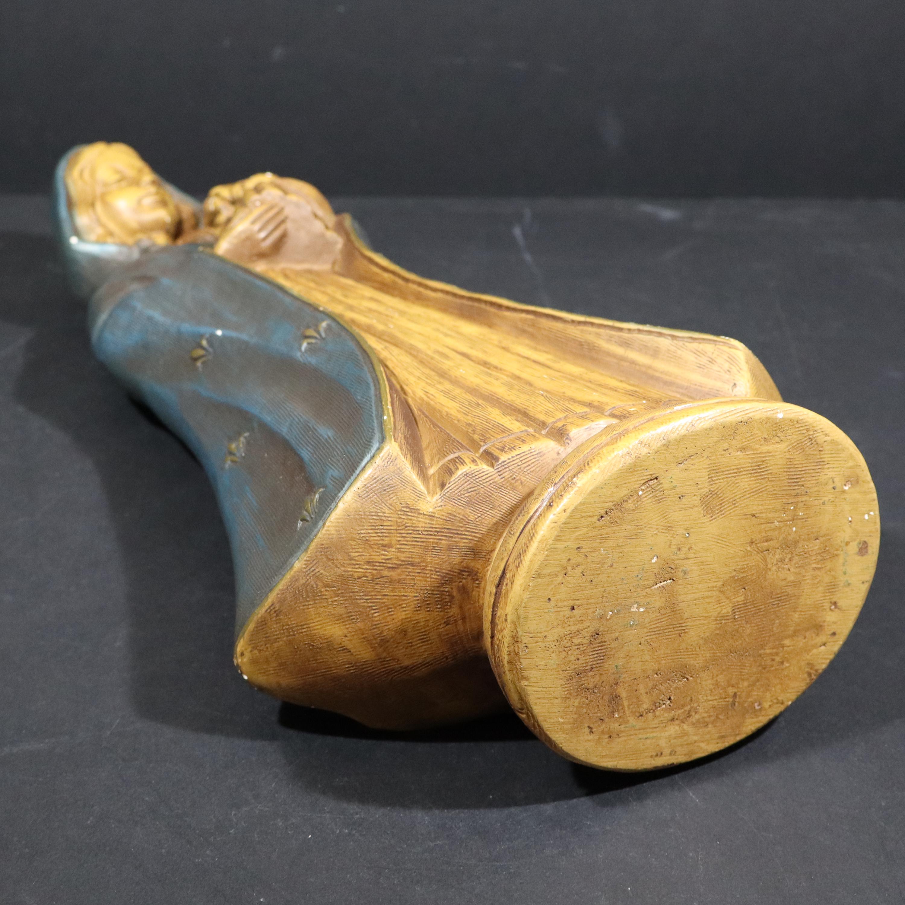 Antique Italian polychrome statue of mother and child, large religious plaster statue 51 cm.