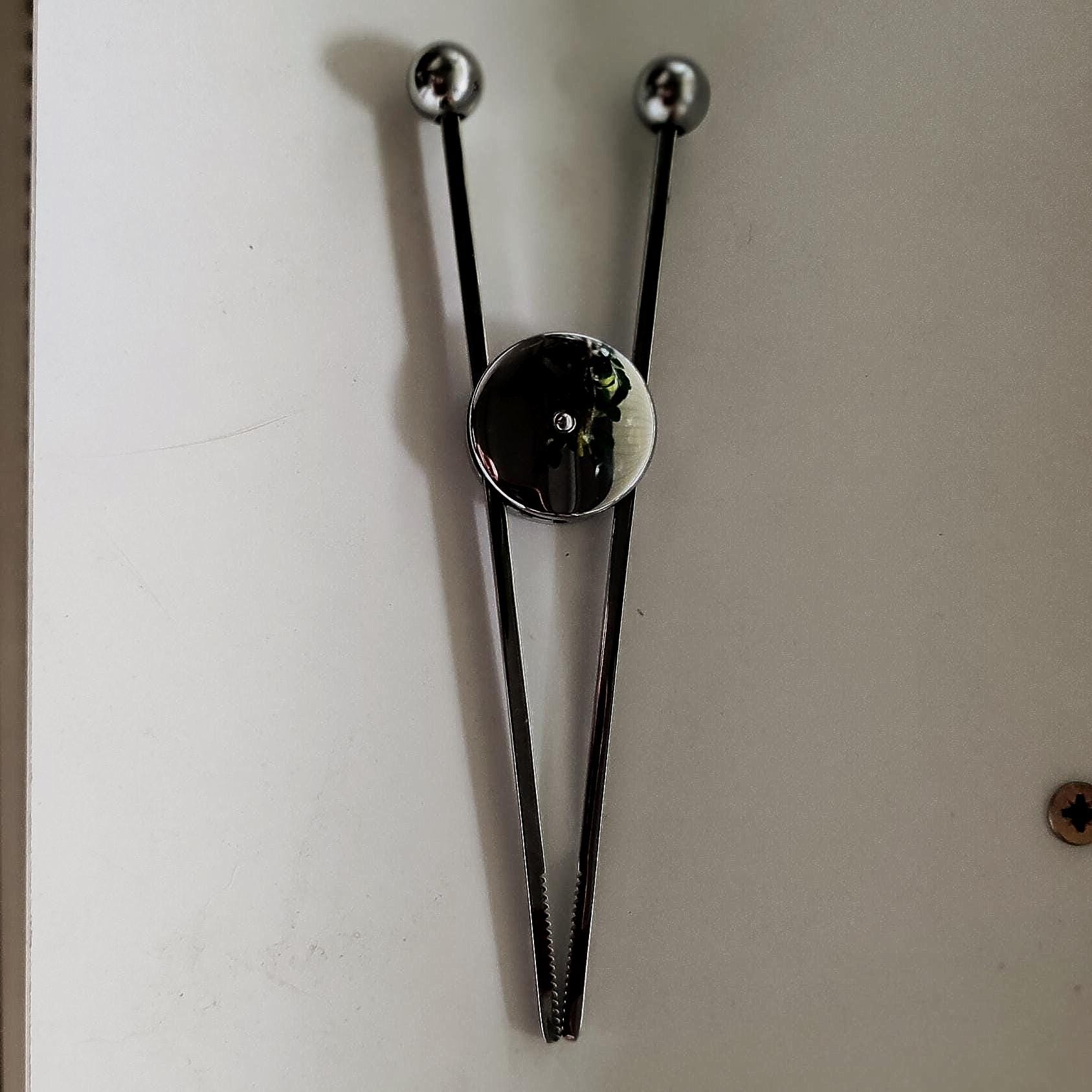 Modern 1950s French sugar tongs, Jacques Adnet design, in silver chrome.