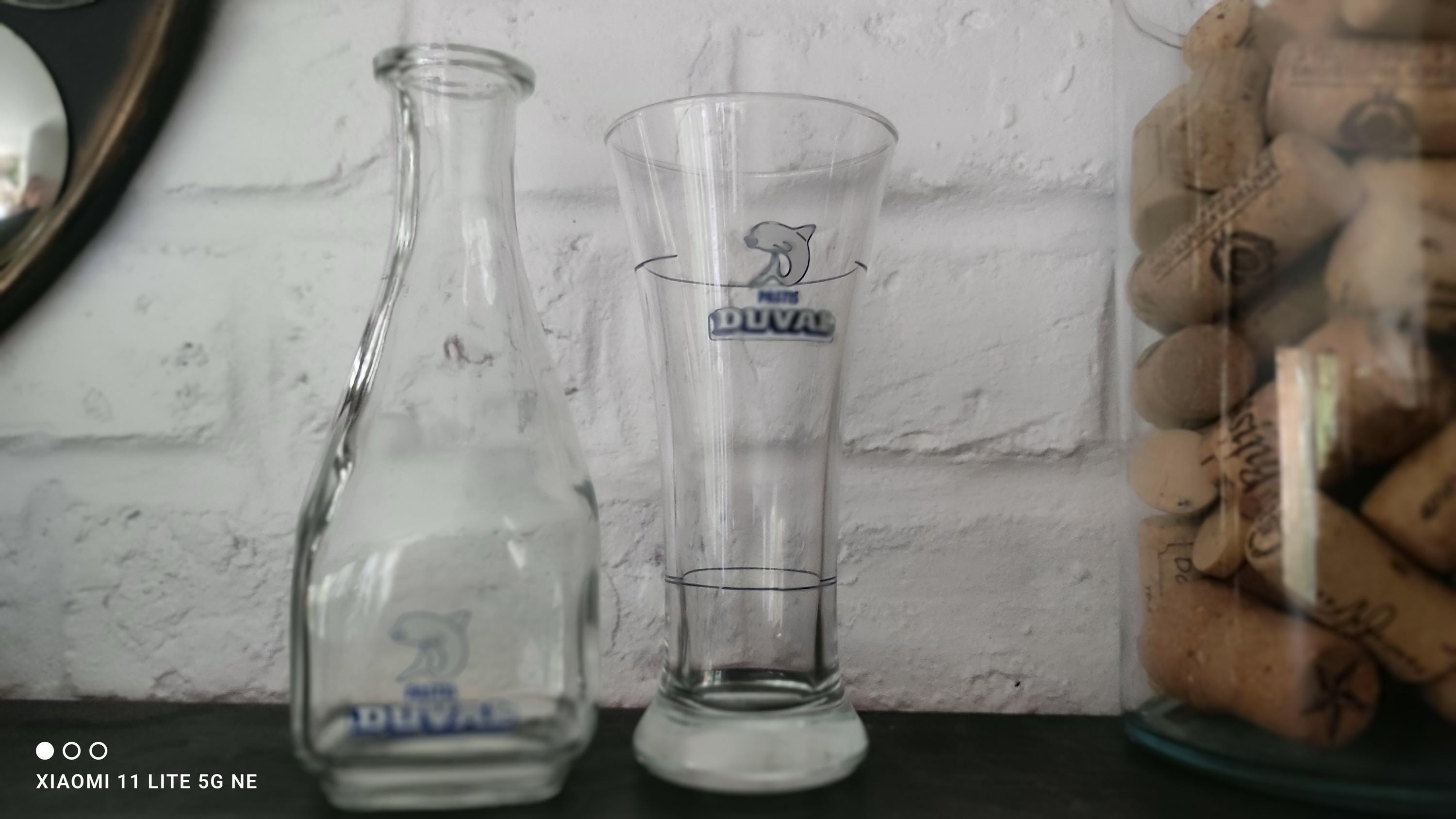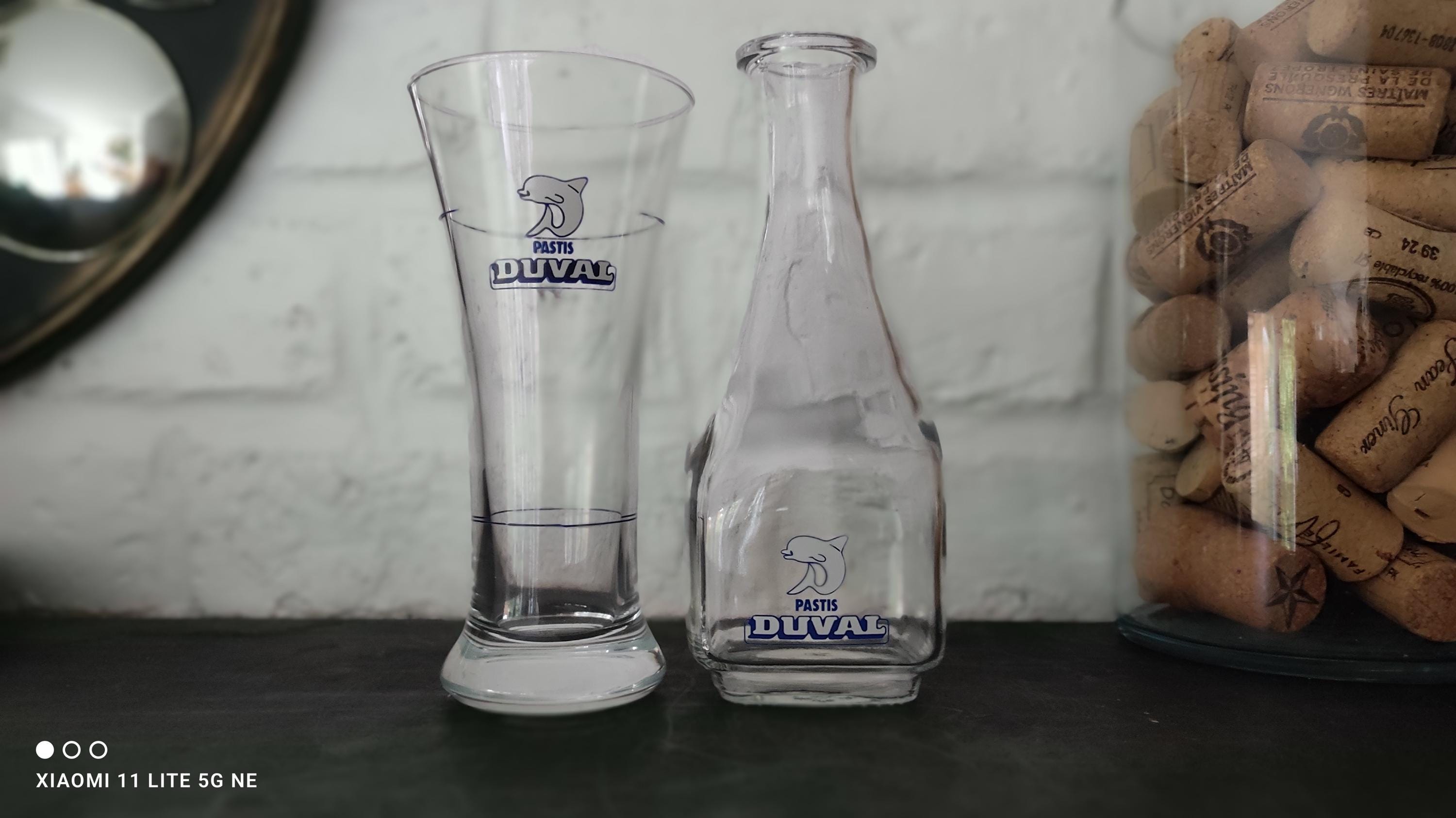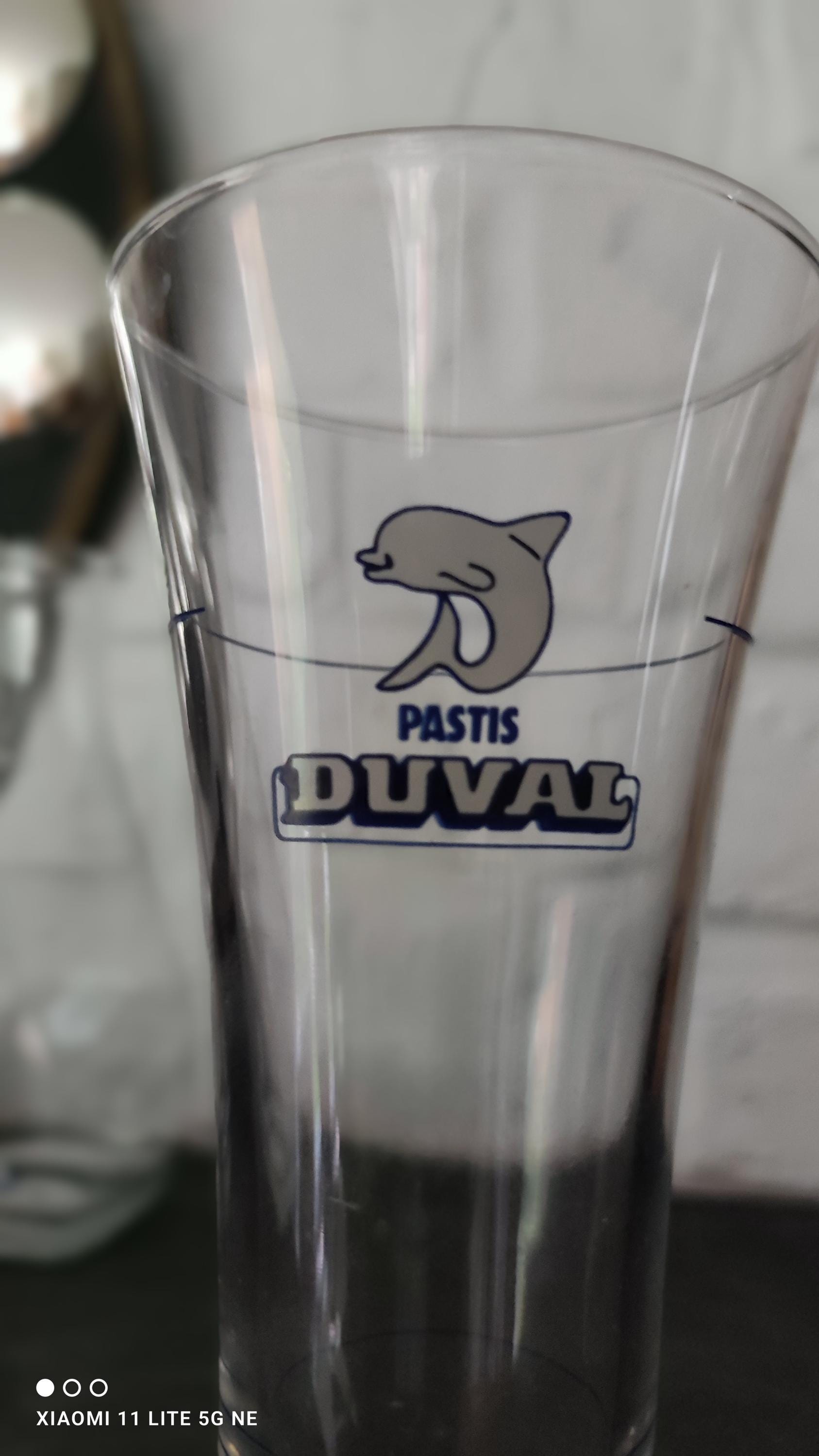 The vintage Pastis Duval carafe and glass are in perfect condition.