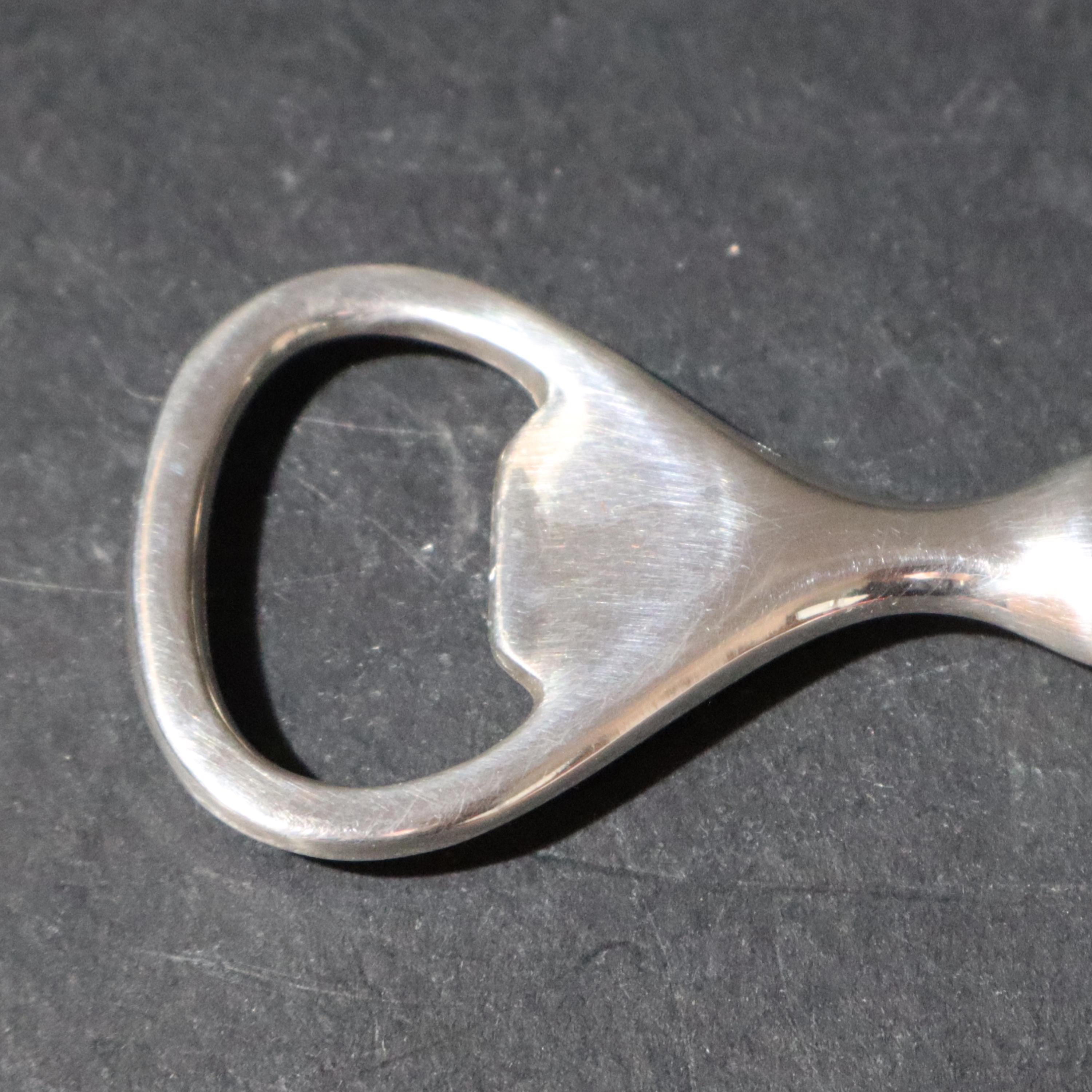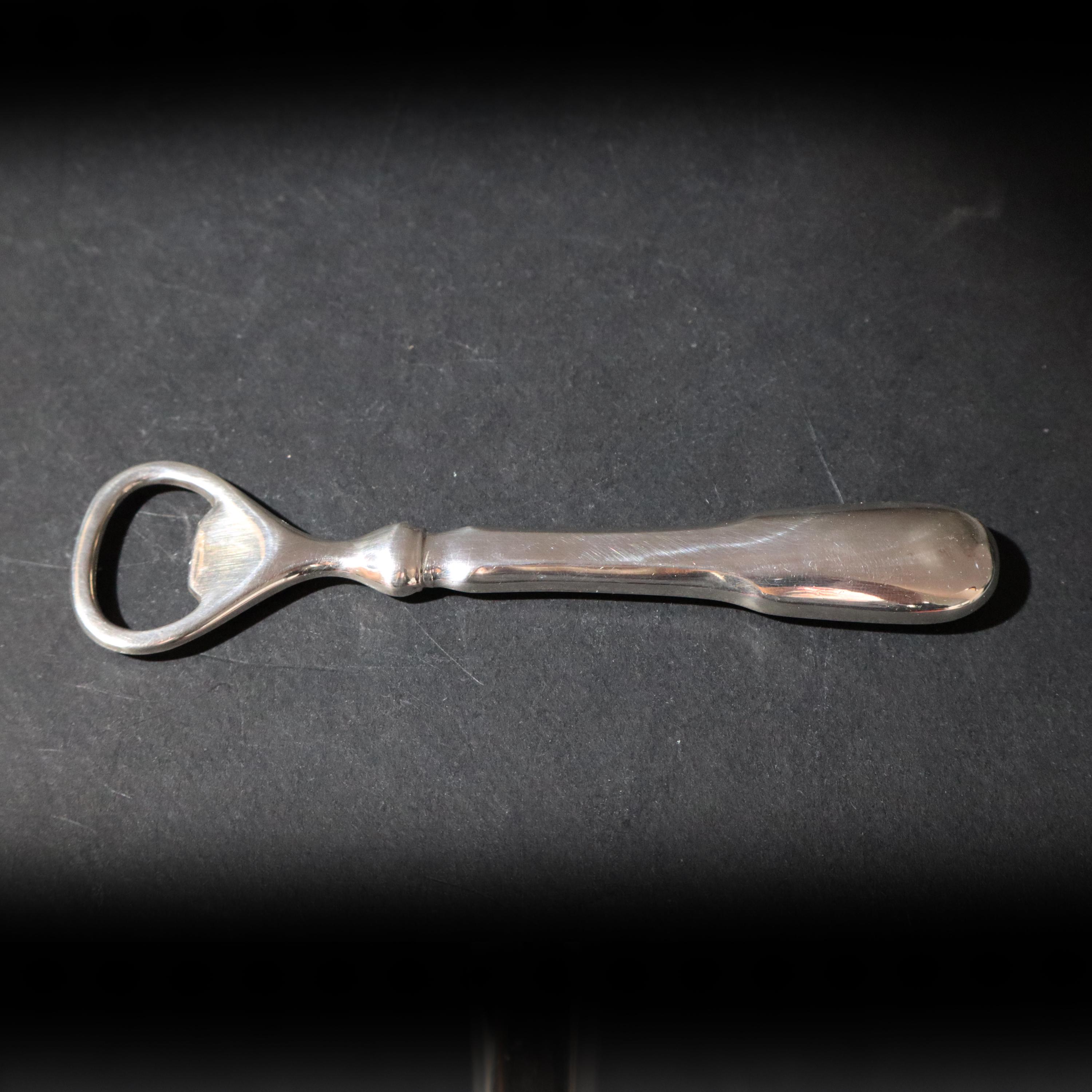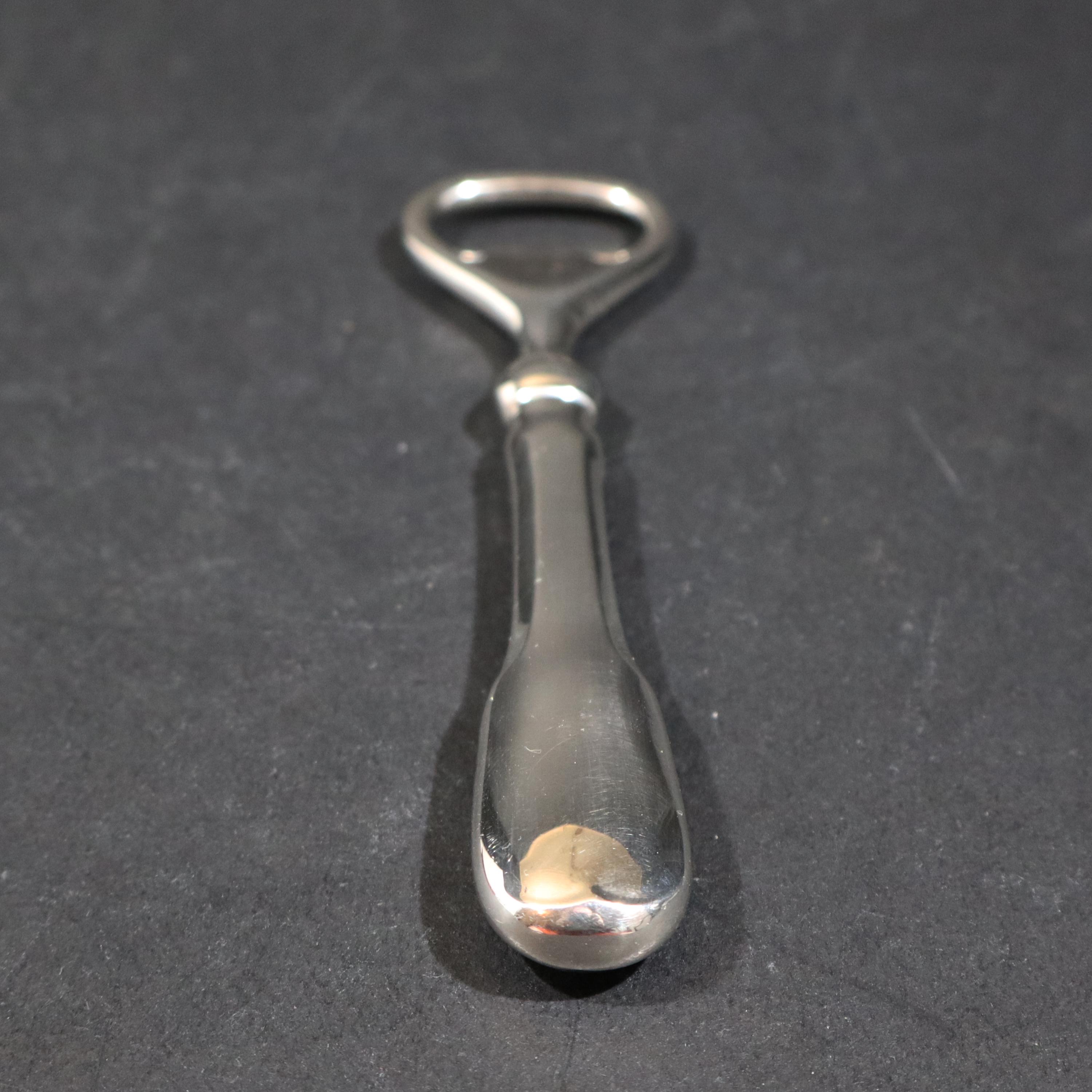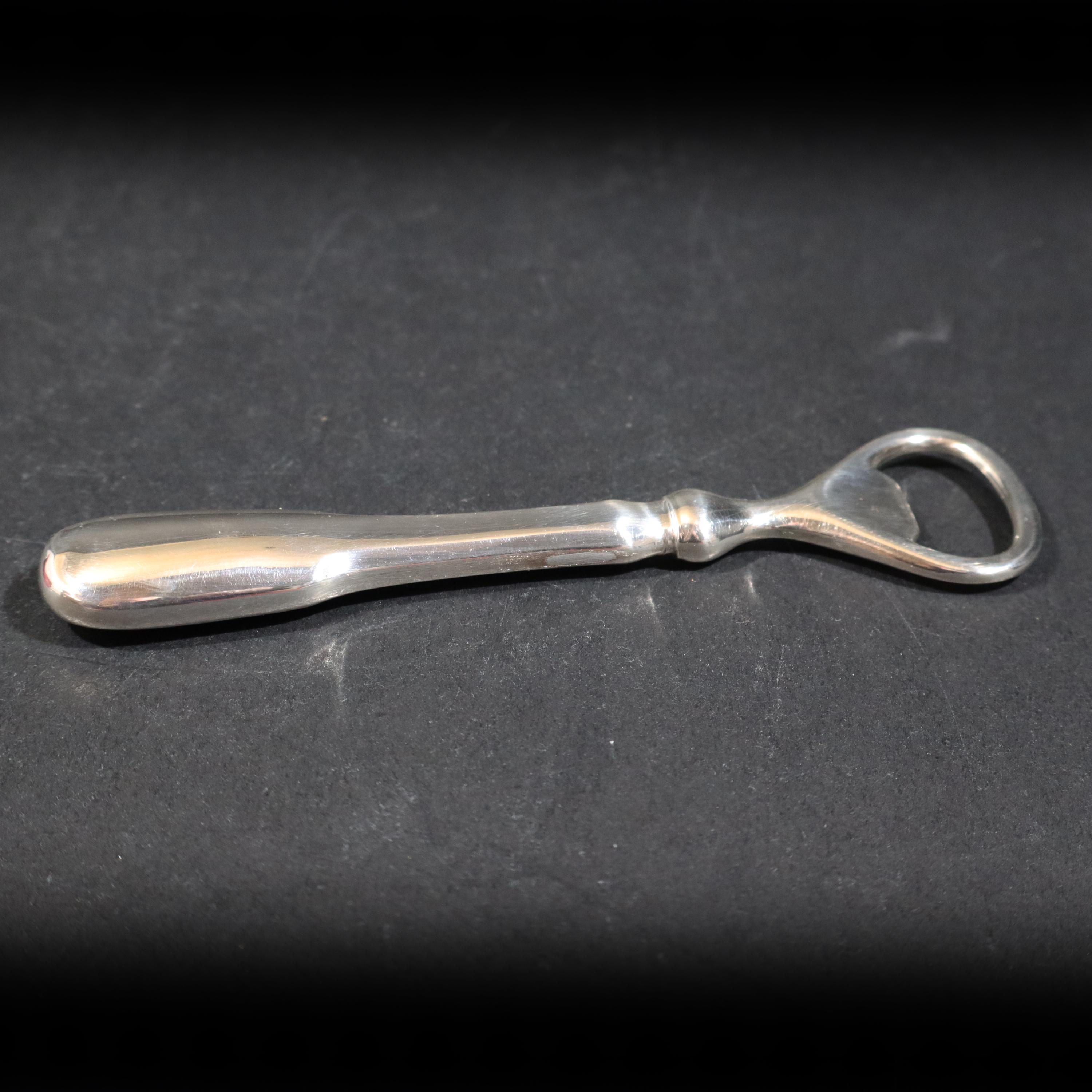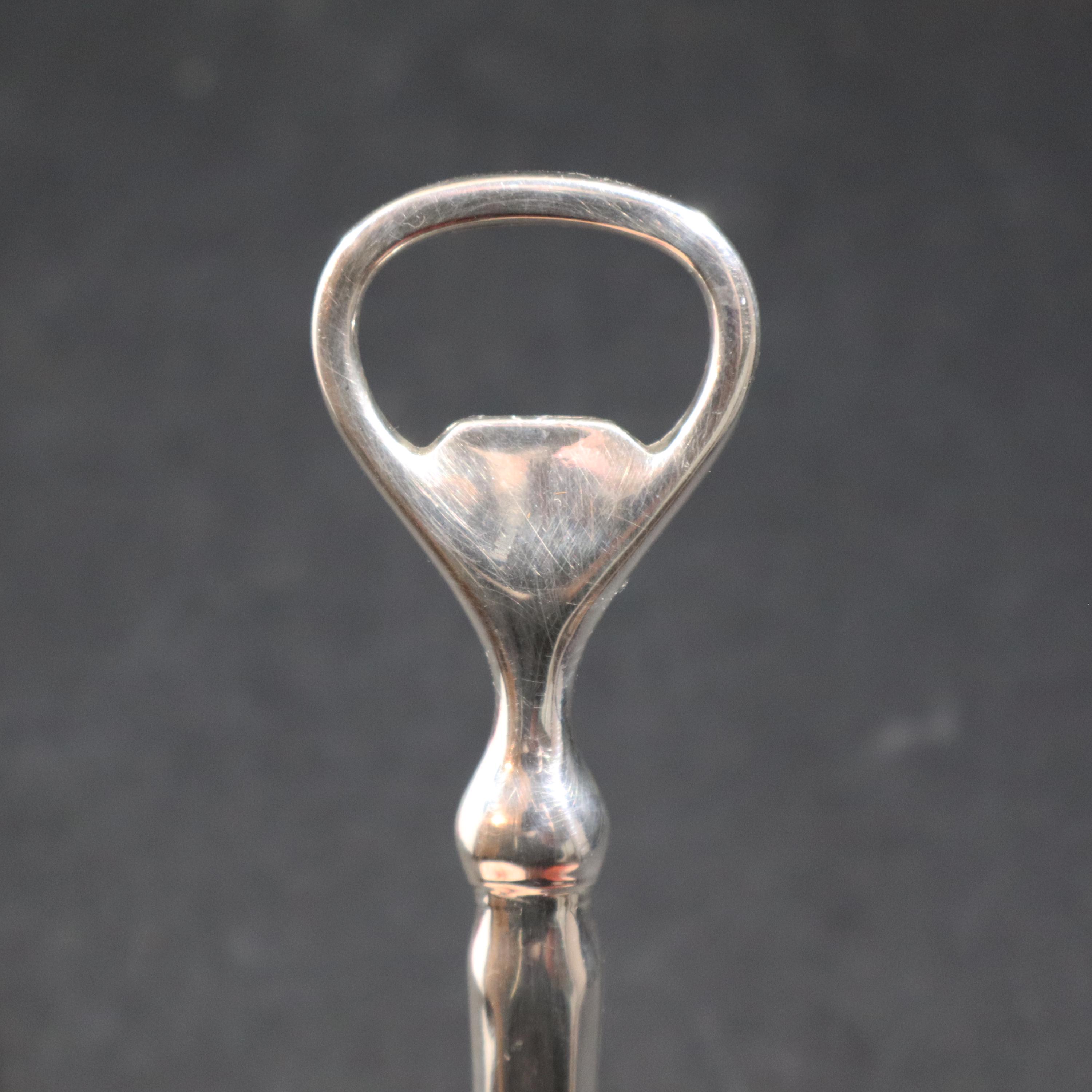 The vintage bottle opener is in good condition with scratches from use, it is not signed but bears the silversmith's label.
